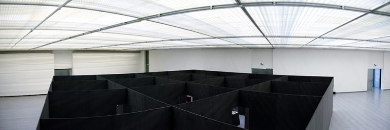 Naujausioje savo parodoje „Labyrinthus“ Dainius Liškevičius pristato kompleksišką projektą, kuriame susijungia architektūros, skulptūros ir instaliacijos formos, asmeninės kolekcijos ir retrospektyvos žanrai. Menininko sumanytas architektūrinis statinys Didžiojoje ŠMC salėje suvokiamas kaip skulptūrinis objektas ir kaip įvietinta parodos erdvė. Kvadratinio statinio, tolygiai padalinto į šešioliką dalių, viduje eksponuojami meniniai objektai, sukonstruoti iš daugelį metų kauptų daiktų ir fotografijų. Ekspozicijoje plėtojami nauji naratyvai, kurių ištakos siekia įvadinį projektą „Trylikto taško projekcijos“ (2013 m., „Artifex“ galerija). Tokiu būdu šie kūriniai komunikuoja su ankstesniais paties menininko sukurtais darbais bei jų motyvais ir atveria kelią naujiems pasakojimams.