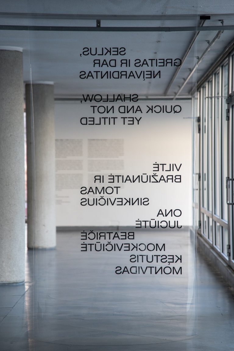 On the other hand, most of the works being shown in the exhibition have, in one form or other, already been in existence. They have been seen in the halls of the Vilnius Art Academy, on computer screens, or in previous exhibitions. Nevertheless, when the artists where invited to re-present these works, they were asked to consider them anew by paying close attention to the exhibition space – the history and the specific style of architecture of the CAC building and its Northern Hall. The works, therefore, acquired new elements of meaning, often spreading in unexpected directions.