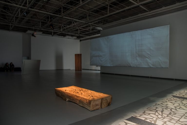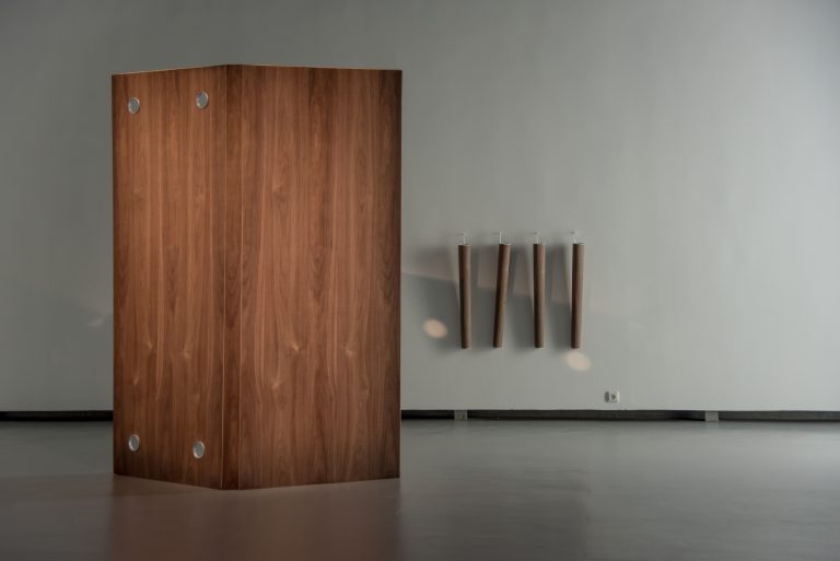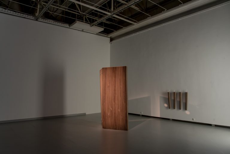 The exhibition architects, Petras Išora and Ona Lozuraitytė, were highly attentive to the cyclical nature of the institution’s work and the constant need to return the exhibition halls to their original condition after each exhibition with as little damage as possible. In response to this, they left all signs of previous damage that reflected the building and the institution’s journey through time and their many identities. The bare construction of the Northern Hall’s ceilings creates an ambivalent situation – on the one hand, it opens up the content of the exhibition space, but on the other hand, it oppresses the space with its optical noise. In this way, they try to show the institution the way it is today: an increasingly nomadic and international space. Once, almost the only gateway to the West for contemporary art in Lithuania, now, although still important, it is only one of many bridges artists may cross in their careers. The architects try to reconsider the prismatic quality of exhibitionism in the genre of art exhibits, setting works in opposition to each other and clarifying not only how the institution affects contemporary artists but how these artists affect the institution.