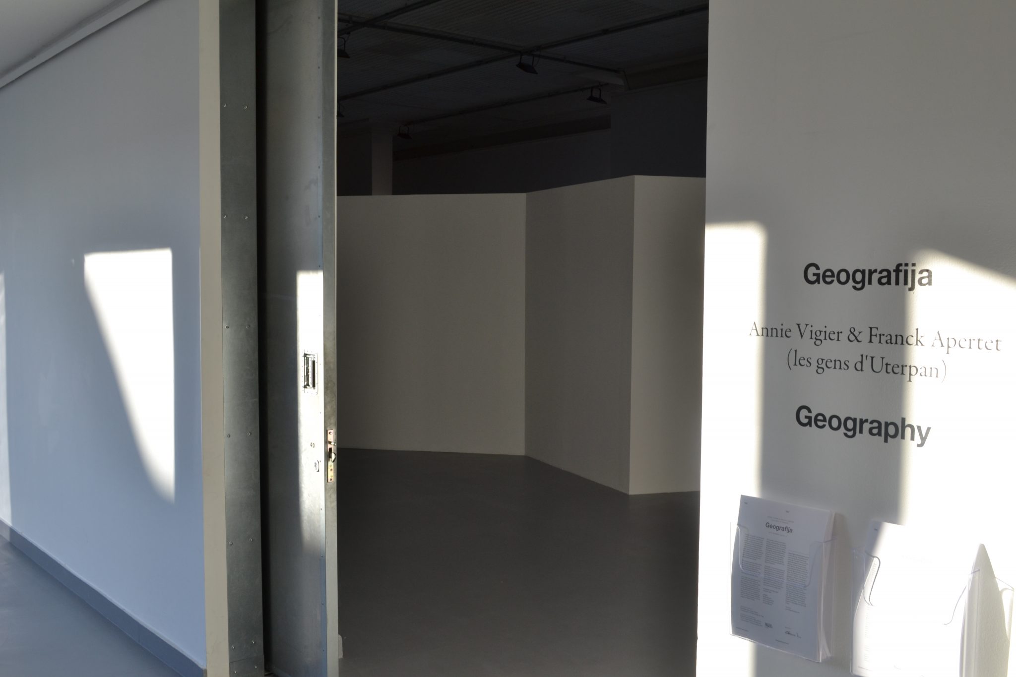 Geography poses the problem of setting a choreographic work in an exhibition space and is a score for four performers designed to take place within the spatial limitations of the place where it occurs. The performers are chosen from the country where the choreographic work is to be presented. The perimeter of the floor occupied by the performers’ movements determines the plan for building a structure (with the means and materials available in the space) that will contain the choreographic work.