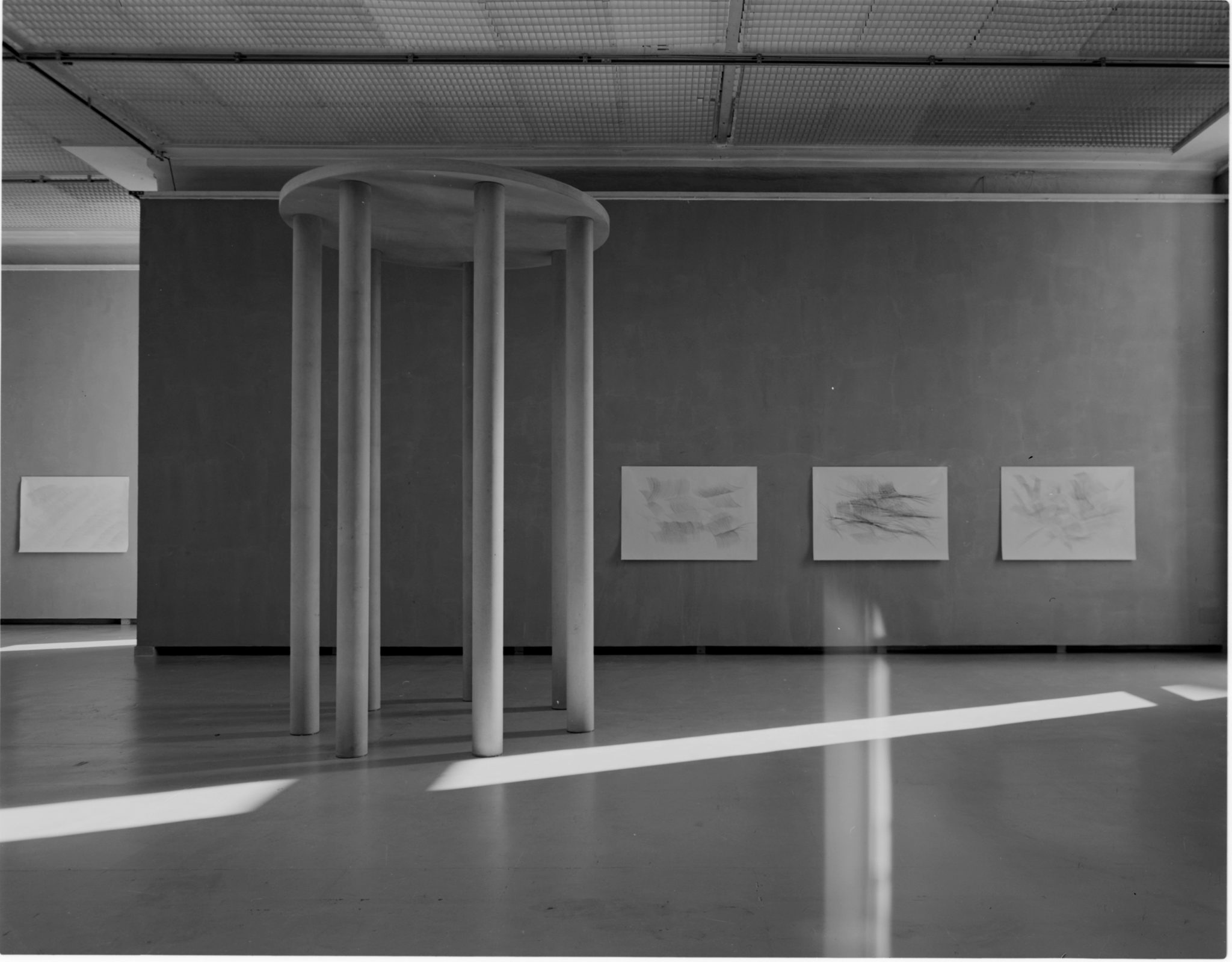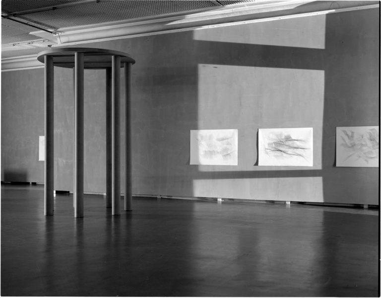 “Would you like to learn to communicate with space and its diversity, to meet people who are not anywhere close at the moment?” asked an invisible, inaudible force in one of Antanas’ dreams, which he then wrote down, just like he did with the other conversations. “Would you like to learn how to catch the right moment?” the same “voice” asked him in another dream. In a film that’s yet to be made, a man stands in a bus stop with his eyes not yet ready for the sun, waiting for the day to catch up to speed. By the time the day wears off, the artist is yet again a little bit closer to proficiency, the contours of which he sometimes grasps when falling asleep behind a wheel or letting his hand draw the same grey graphite stroke for the thousandth time. The longing for ‘things that don’t yet exist’, once experienced in a dream, fills the space with the imaginary sound of a musical instrument, and the walls are flooded with clay of an Algerian desert.