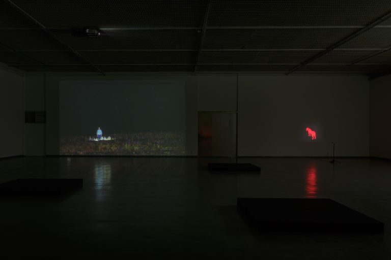 Glowing dogs, a blazing screen, a dim lantern or popping fireworks create a metaphor of fragmented human consciousness. Dreams and memories, realism and surrealism, politics and mythology intertwine, not as opposites but rather as variations of the same phenomenon.