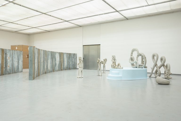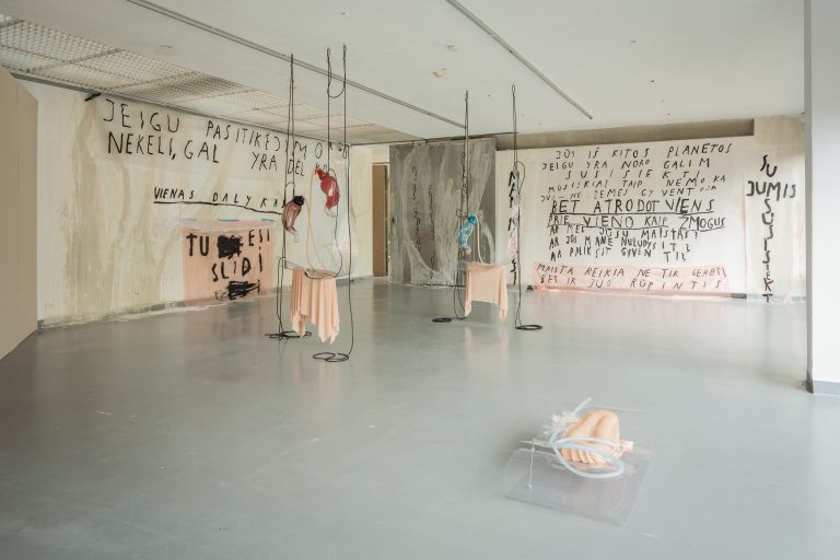 The exhibition in Vilnius, set within an ambitious architectural intervention designed by architect Diogo Passarinho, and which will considerably change the institution by opening it up and reconfiguring the entire space, tackles the concept of belonging by bringing together unstable territories and bodies. A large number of works have been commissioned especially for the exhibition: Anna Hulačová creates a monument in the form of a fountain; Dora Budor takes over the space surrounding the terrace and turns it into a futuristic desolate landscape inhabited by animatronic birds; Augustas Serapinas has worked with a local community to address the heritage of the nuclear industry; Sanya Kantarovsky premieres a group of new, unique works; Daiga Grantina has created a large group of sculptures; Melvin Edwards revisits one of their iconic barbed wire pieces from the 1970s; Laure Prouvost creates an immersive installation in the form of a landscape; Pakui Hardware produce new works addressing technology and human perception; Ieva Rojūtė installs two new murals; Michael E. Smith infiltrates the space with sculptures and videos; Caroline Achaintre produces large-scale new sculptures… These commissions are accompanied by loans, shown for the first time in Vilnius, of important works by: Darja Bajagić, Nina Beier, Huma Bhabha, Miriam Cahn, Jayne Cortez, Melvin Edwards, Pierre Huyghe, E’wao Kagoshima, Ella Kruglyanskaya, Katja Novitskova, Max Hooper Schneider, Anu Põder and Rachel Rose. Drawings, paintings, installations, videos, music, texts, performances form a polyphony addressing the multiple artistic strategies of our time.
