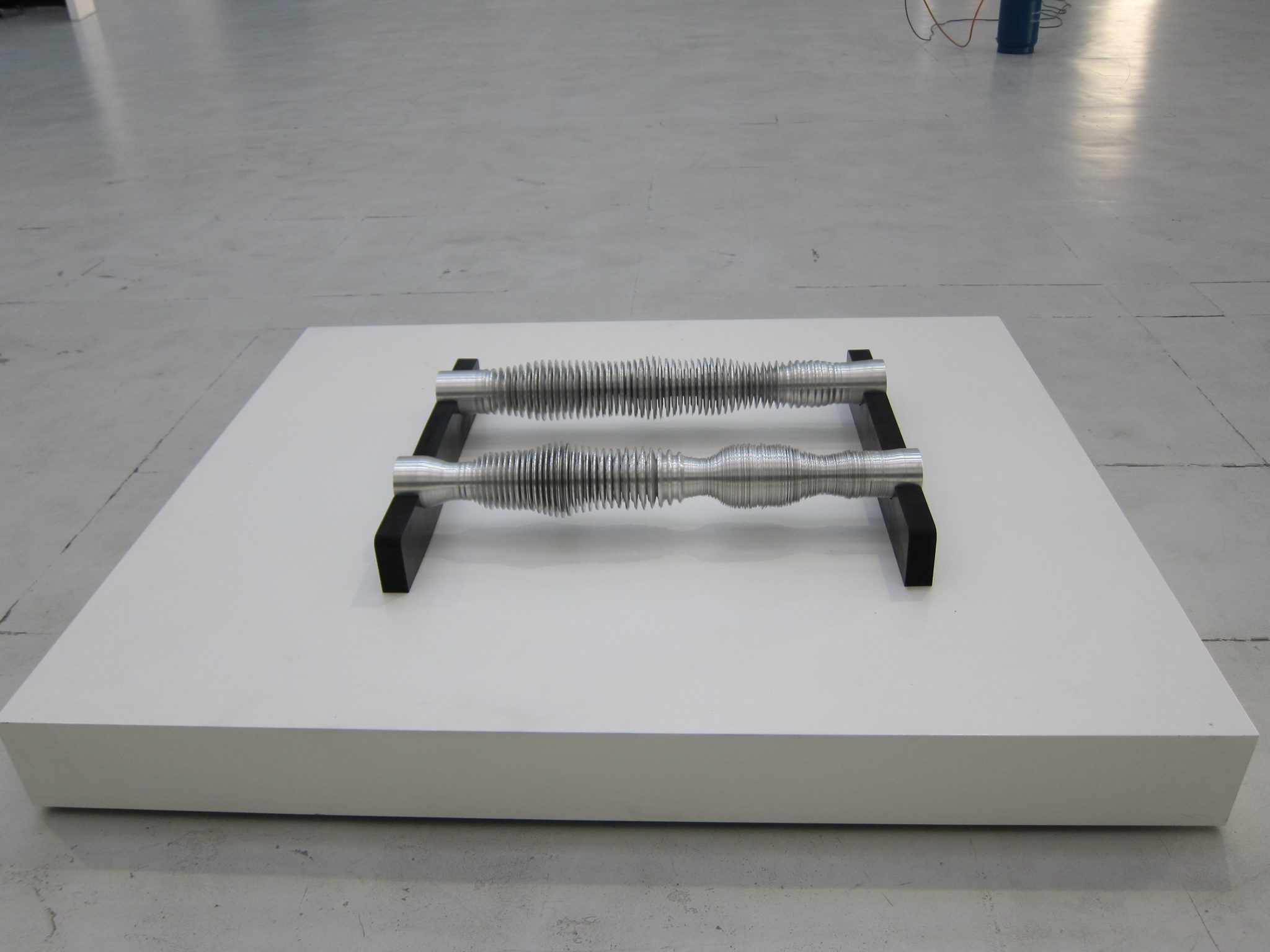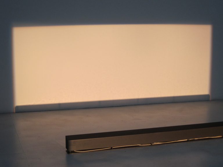 Carsten Nicolai frequently uses geometrical, optical, ornamental structures, yet his works are not limited to explorations of form. He seeks to demonstrate the internal configuration of a form and reveal the physical processes and formulas that underlie different natural phenomena. The artist often bases his work on oscillation physics and converts frequencies into images or transforms acoustic signals into optical structures, thus making the invisible visible. In the exhibition Pionier, words uttered by Laurie Anderson are materialised as aluminium sculptures, burning gas in a transparent tube visualises the speed of acoustic waves, the usually unseen heat waves become visible with the help of light and shadow, while the video work demonstrates the phenomenon of stealth that resembles military technology to prevent detection of information.