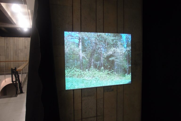 Sleeper: an exhibition as a house observed by an animal from a shadow of a forest, cars passing by