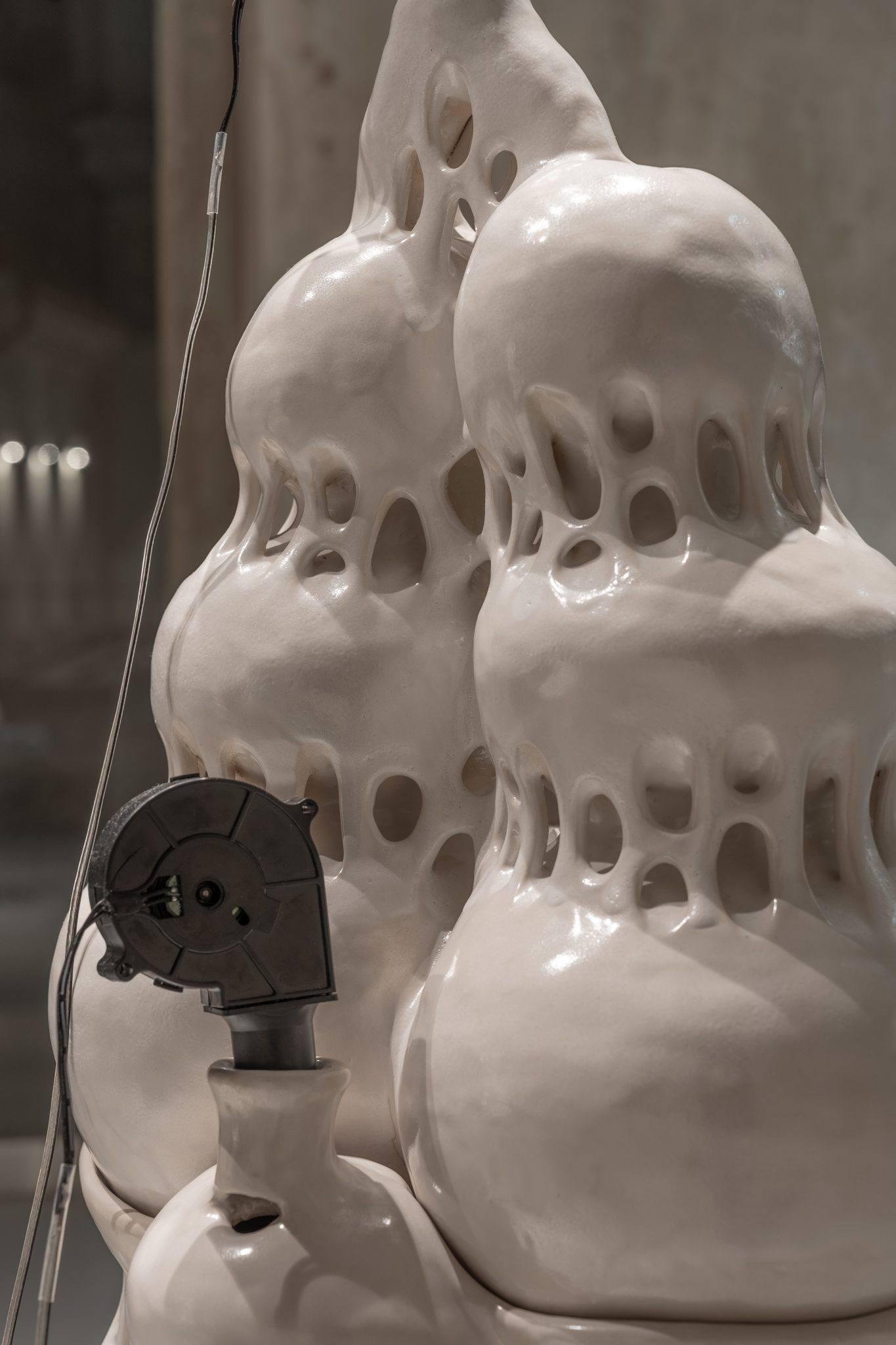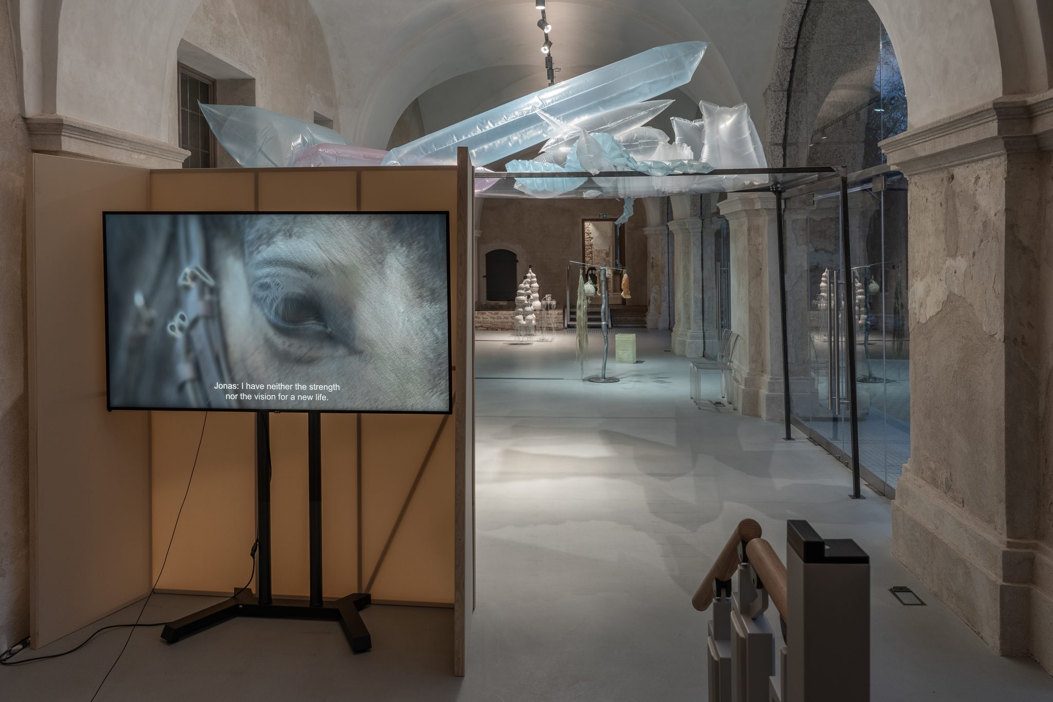 fall began with thoughts on the in-between, the horror and the bounty of an unnamed sense of the present. In five artworks, the artists invite us to enter or observe the relationship between material and human modes of being, between generations, emptiness and filler, something synthesised and homogenous.