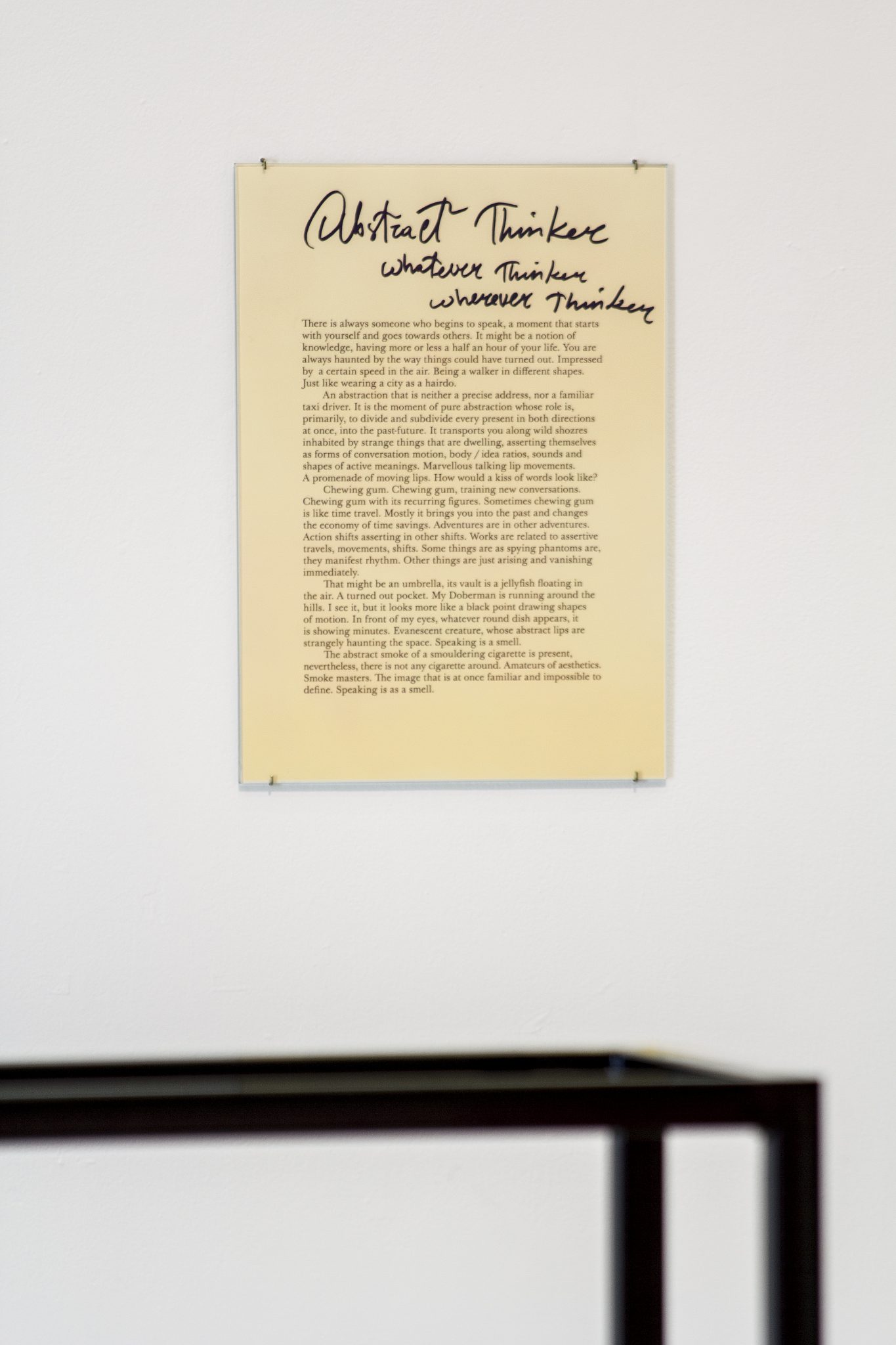 In her practice, the Vilnius-based artist initiates events through objects, language, abstract forms, and subtle alterations to common routines and situations. Using efficient and familiar processes of mediation, her works generate imaginary relationships, textures, rhythms, and movements, that choreograph exhibitions, scenarios, and narratives for the viewer. Commenting on the present conditions while conjuring events in the past and future, it is the design of a parasitic language that inhabits existing things with new thoughts.