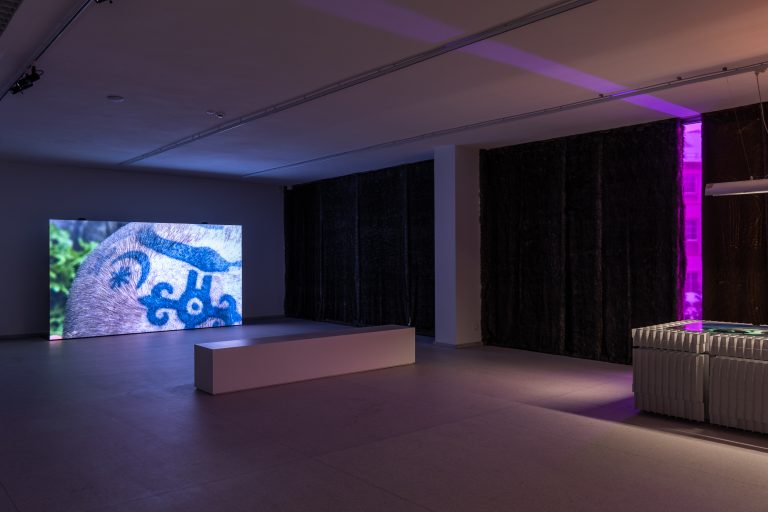 Mykolas Valantinas and Nefeli Synesiou-Quay, Hoverfly, 2025.Single-channel video, colour, sound, 25’38’’.; and Rytis Valantinas and Mykolas Valantinas, a series of artworks created between 1974 and 2025. Mixed media, dimensions variable. Photo by Lukas Mykolaitis