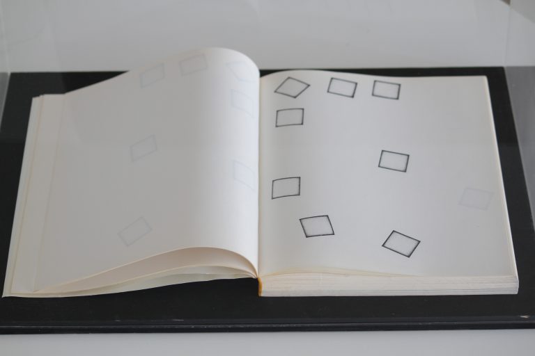 In 1968, Seth Siegelaub organised an exhibition of conceptual art in a book. It contains works by Carl Andre, Robert Barry, Douglas Huebler, Joseph Kosuth, Sol LeWitt, Robert Morris and Lawrence Weiner. Borrowed from the library of Kazys Varnelis House Museum, the book is shown in a glass vitrine at the CAC Reading Room.