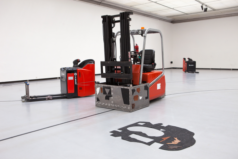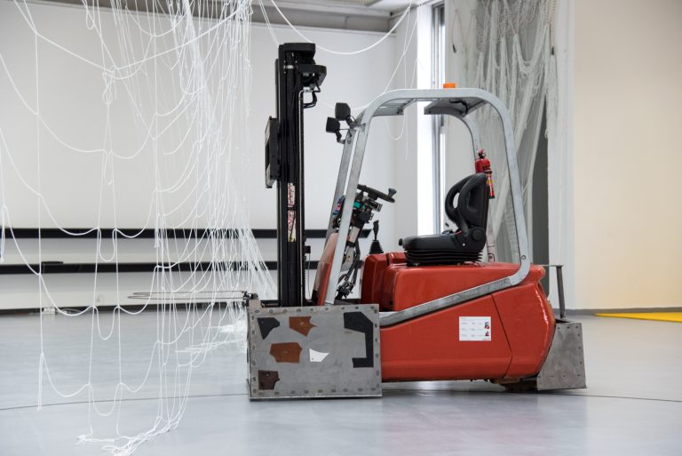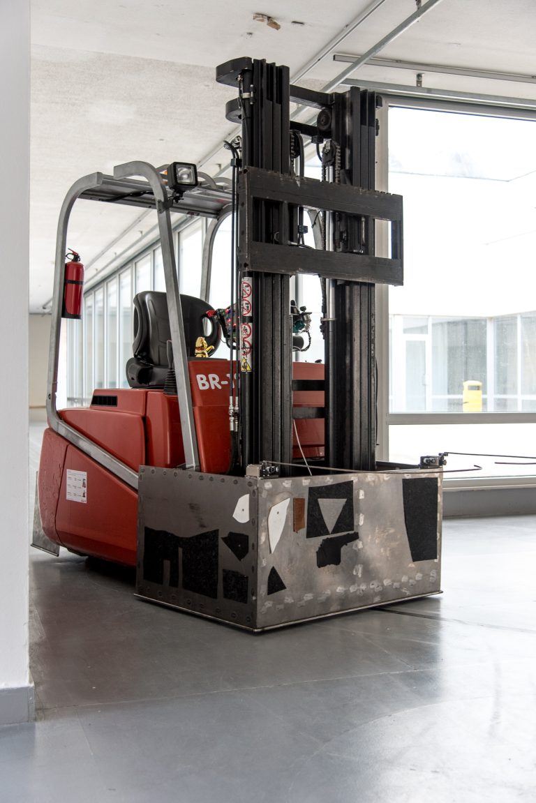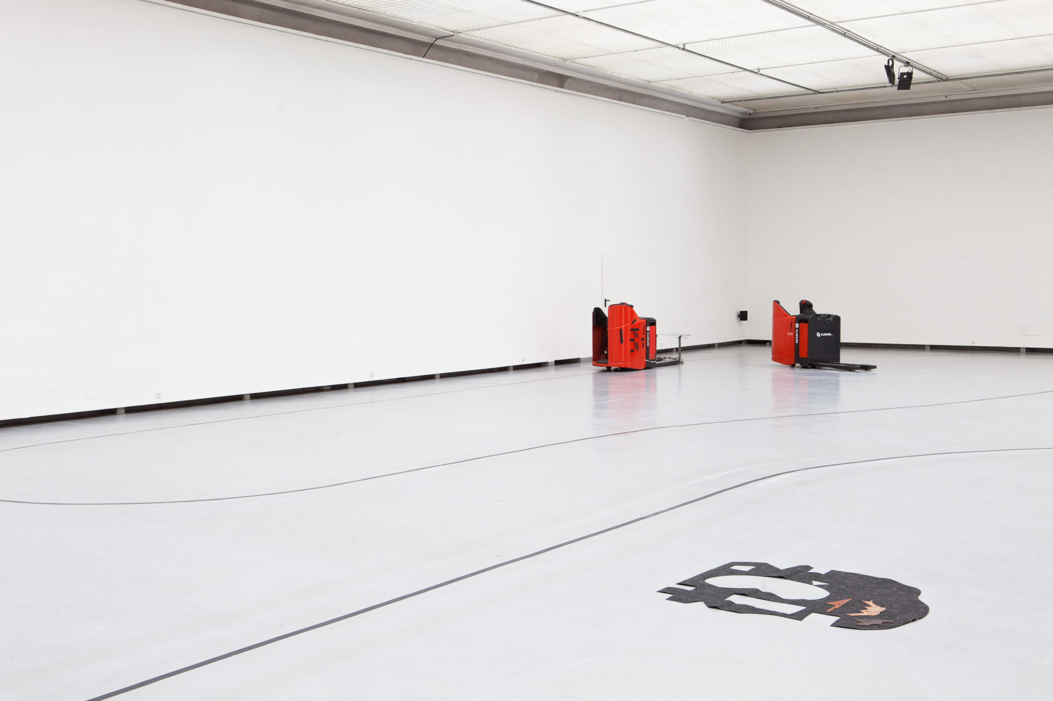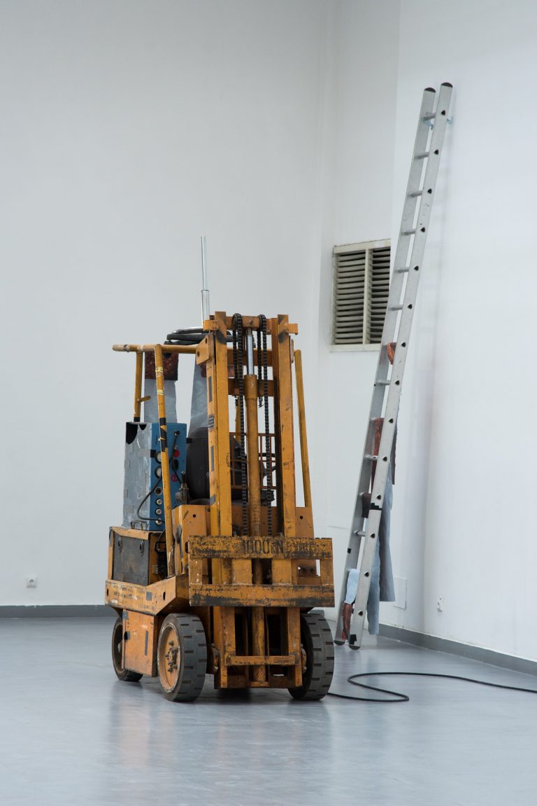 The artist’s first solo exhibition at the CAC is organised by applying and emulating a business model: it is initiated as an enterprise, a start-up, a technology fair or a gang. Artworks appear as artefacts, trophies and tools – side products, settings and props of this live drama with its particular philosophy, myths, culture, notional products and solutions. The overall project, in artist’s own words, aims at grasping a shift, a beginning of a new era, and enthusiasm and pessimism that follow the ongoing advancements of science, technology and economics.