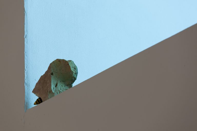 The Novy Projekt meteor fell in 1908 in the Lithuanian region of Samogitia, reportedly weighing 1 kilogram. Its current location is unknown and the impact coordinates direct to a nameless spot beside a country road. No sources comment on the origin of the name. Meteor appearances serve as cosmic details of human history. Almost devoured by the atmosphere, these bodies pierce the horizons of events, leaving trails, superstitions and craters. By their very essence they belong to destructive movement which reduces a substantial object to its sizzling-hot trace. Novy Projekt also represents history that can still be written down by the hand of imagination.
