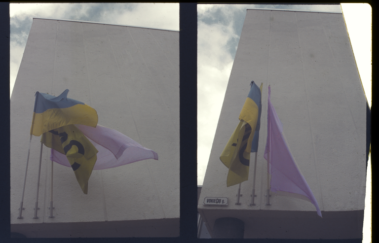 This installation was Kovalevskij’s final ritual for the city of Tromsø, forming part of his personal reflections on farewell rituals. Now, Goodbye Gestures returns in a new form – on the facade of the Contemporary Art Centre (CAC) – where it takes on new meaning. Since 2022, Vsevolod Kovalevskij has served as Head of the Technical Department at the CAC. The flag will be raised on his last working day at the institution – 20 October – and will remain on view for a month. This gesture marks Kovalevskij’s farewell to the institution, but also signals the beginning of a new stage – both in the artist’s creative practice and in the CAC itself, which is also undergoing a period of transformation. ‘It seems that, amid changes in leadership and the rapidly shifting political, economic, and other circumstances, the CAC as an institution is experiencing – and will continue to experience – quite a dynamic period. Such a state of constant change is not favourable for the CAC team or its collective spirit, and therefore calls for special attention and care. Vsevolod’s artistic gesture can be interpreted as a poetic canary of this situation,’ said CAC Director Valentinas Klimašauskas, commenting on how the work resonates with the institution’s ongoing transitions.