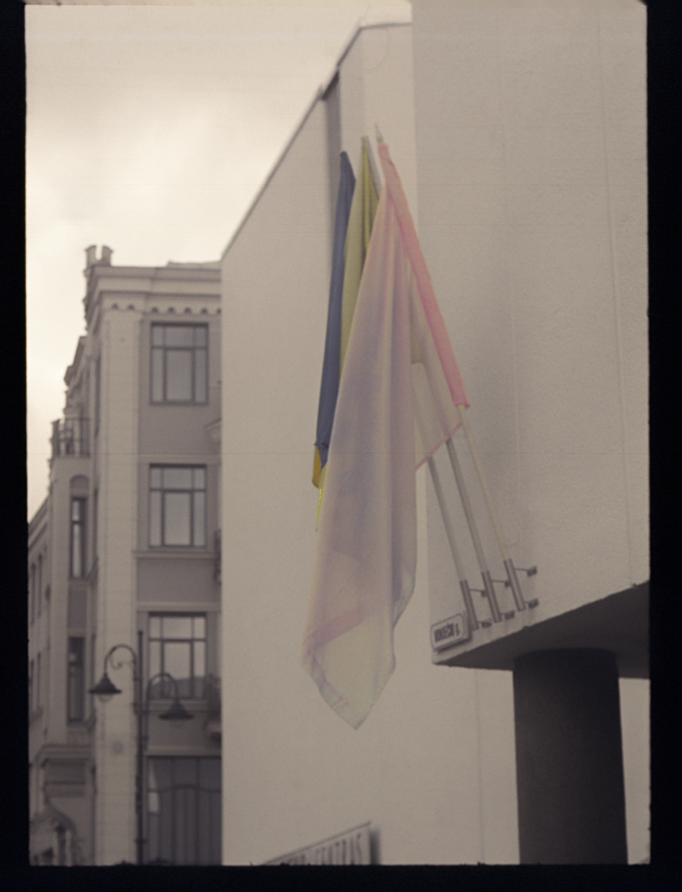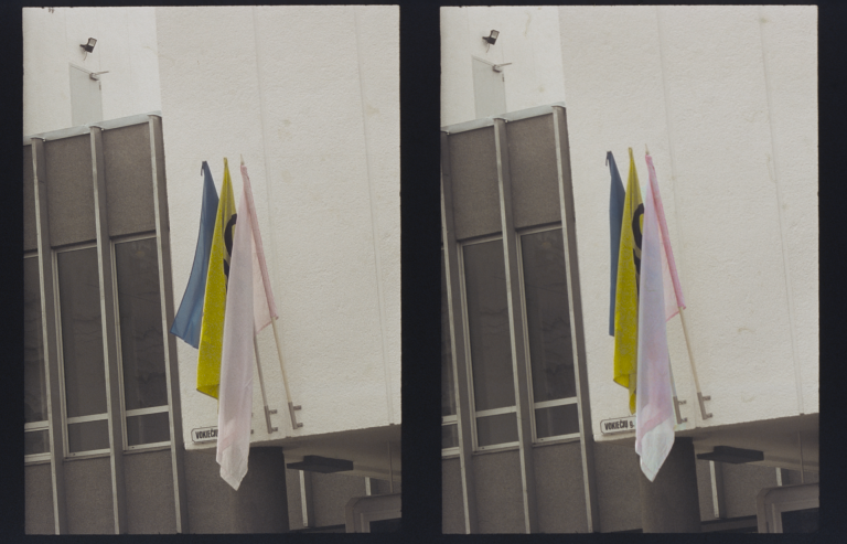 The work Goodbye Gestures by artist and curator Vsevolod Kovalevskij, which invites reflection on the meaning of parting as a state between ending and renewal, was first commissioned in 2021 for the exhibition ‘To Live as a Mayfly’ in Tromsø, Norway. The piece comprised two identical 140 × 200 cm flags painted with cold beetroot soup, creating a shade the artist called ‘Baltic Pink’. One flag hung at the bus station, the other at the seaport, marking the trajectories of daily transit and departure.