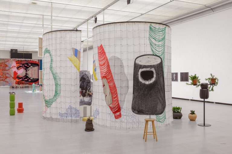 Departing from the limits of the verbal, “Words Aren’t the Thing” is based on the instinctive, the material, the visual and the personal. It manifests itself as one layered body – a mirage-like landscape, similar to a staged set or a hunter’s decoy, which tricks the eye into moving closer and offers a glimpse inside what remains at distance. The works in the exhibition are materiality and experience combined, oscillating between irony and integrity, veiling and grotesque, acting and lucky accidents. They invite the viewer to meet half way whilst remaining rooted in the world of things – approachable through relationships that, luckily perhaps, we have no language for.