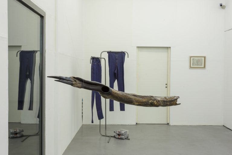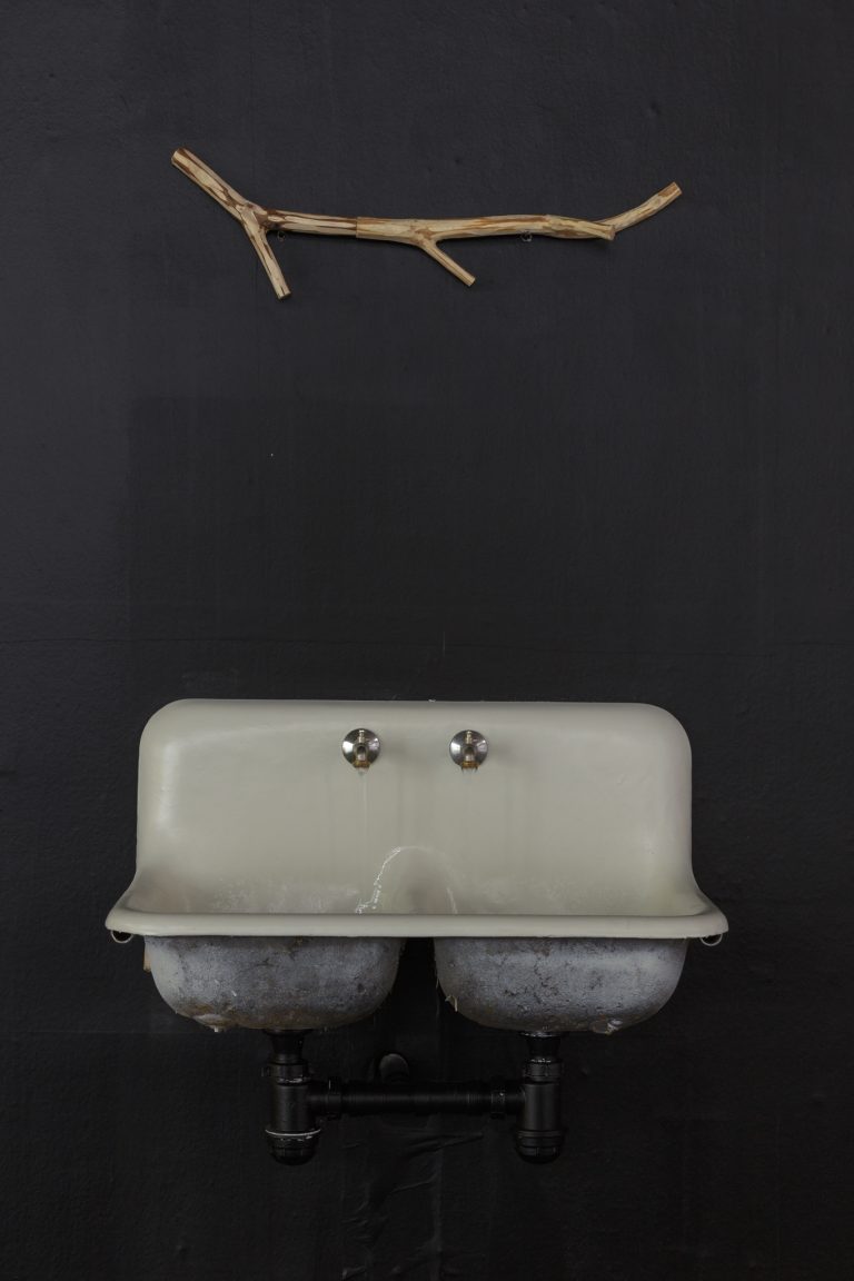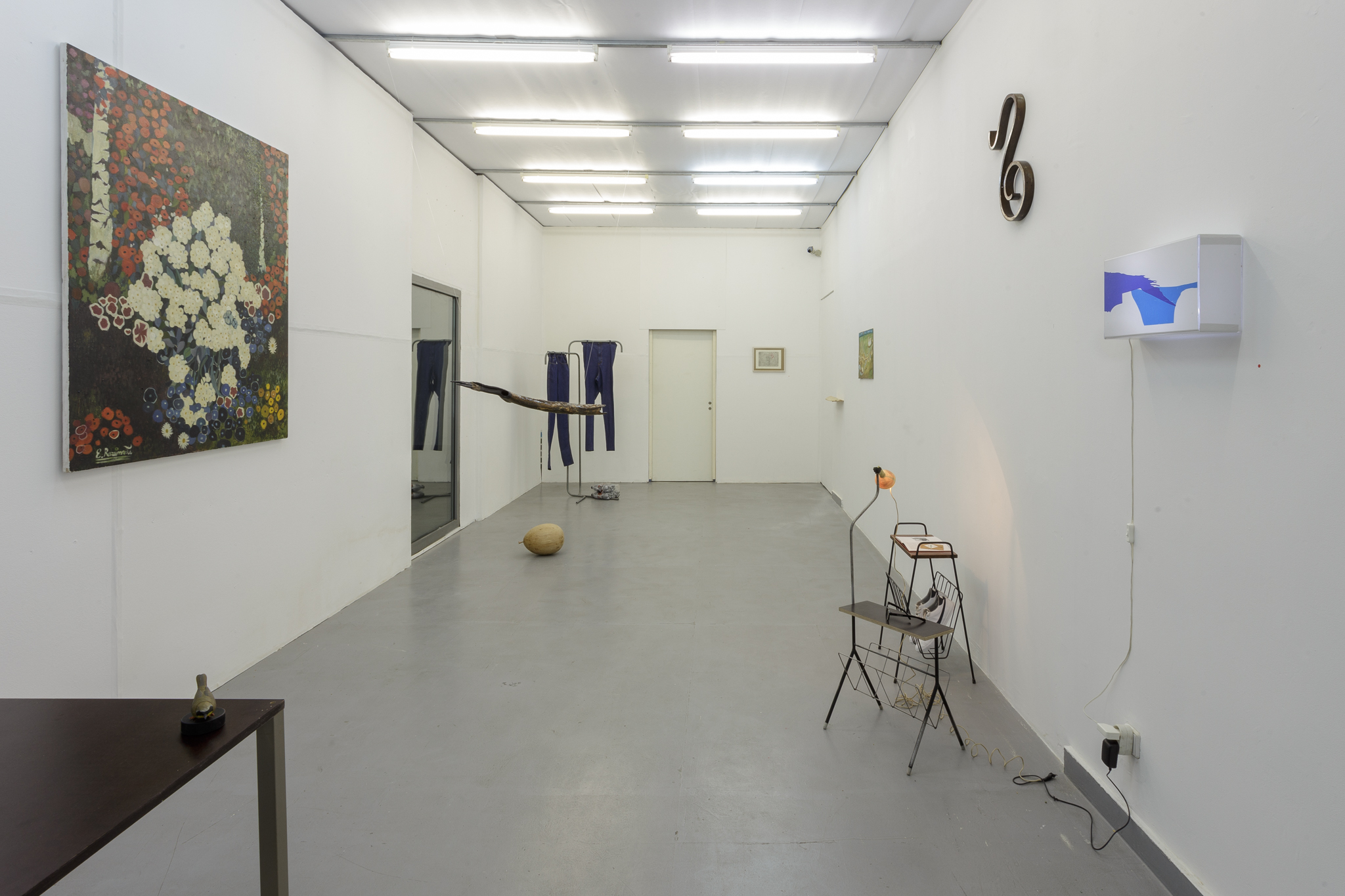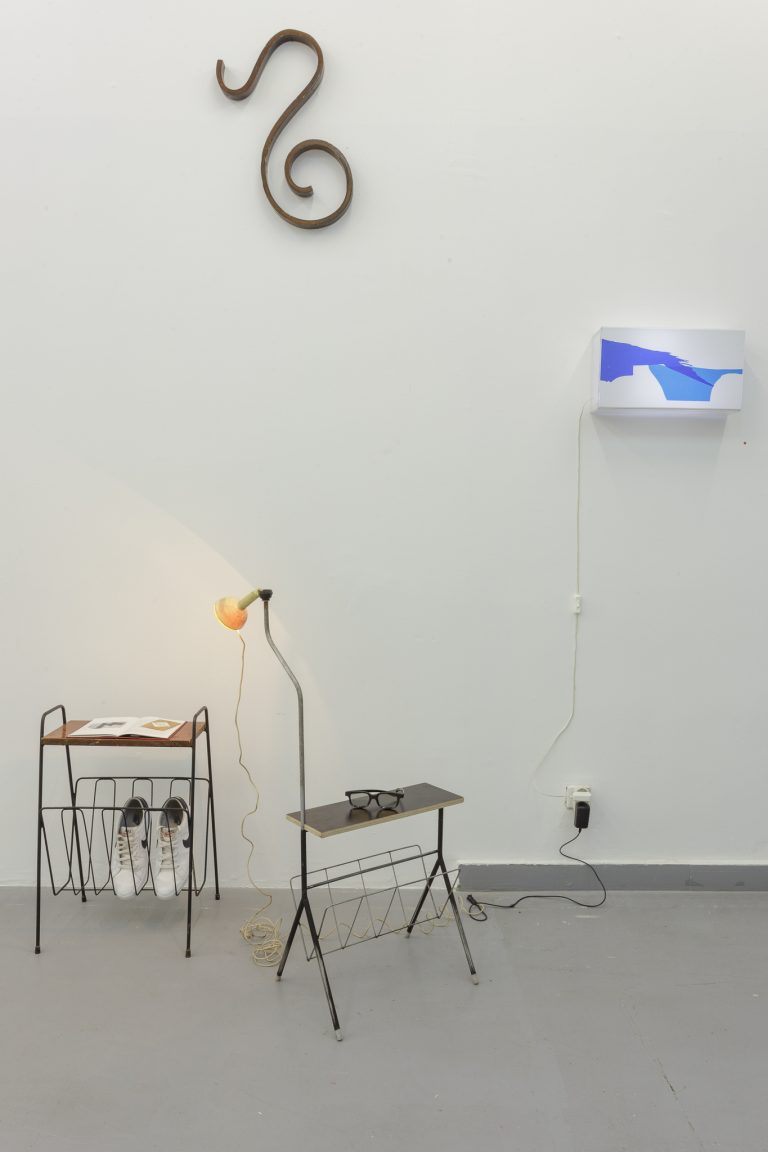 The physical body of Landzbergas’ sculptures is initially a dotted line; it is a trace, a condition, or a circumstance of a past, present, or future event. This phenomenon is subject to our own exhibition/sound-copying bodies that perhaps move, linger, perceive or hesitate. A particular sculptural object, a thing, exists in a space and in relation to it and to us in it; residing in the pre-verbal experience, before (mis)recognition and definite meaning. As in nature: 1+1=3 and more.