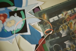 “Now, everywhere I look I see only two colours – blue and yellow; all the others seem to have disappeared. I started looking at everyday things in a new light, although the works have not stopped: we are currently preparing the space, waiting for a truck from Lithuania to bring new collages that will become part of the installation. One of the themes explored in Gut Feeling is the personal courage to rely on hunches and make decisions that are not rational or logical. In the context of the current events, the work acquires yet another meaning and asks what would be the right thing to do, what could and should be done,” says the artist.