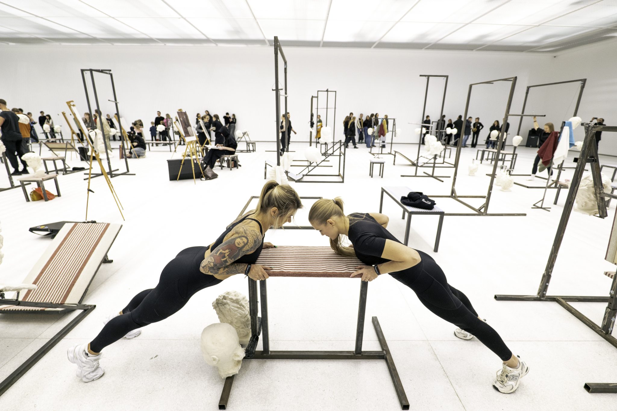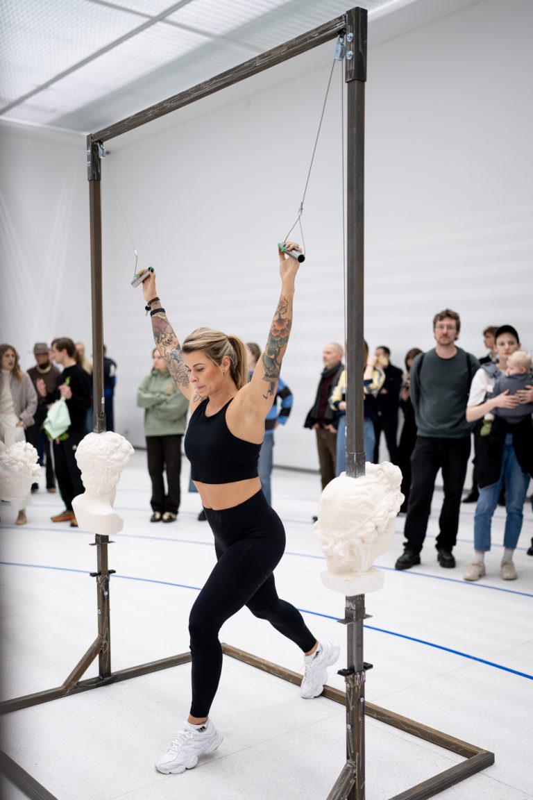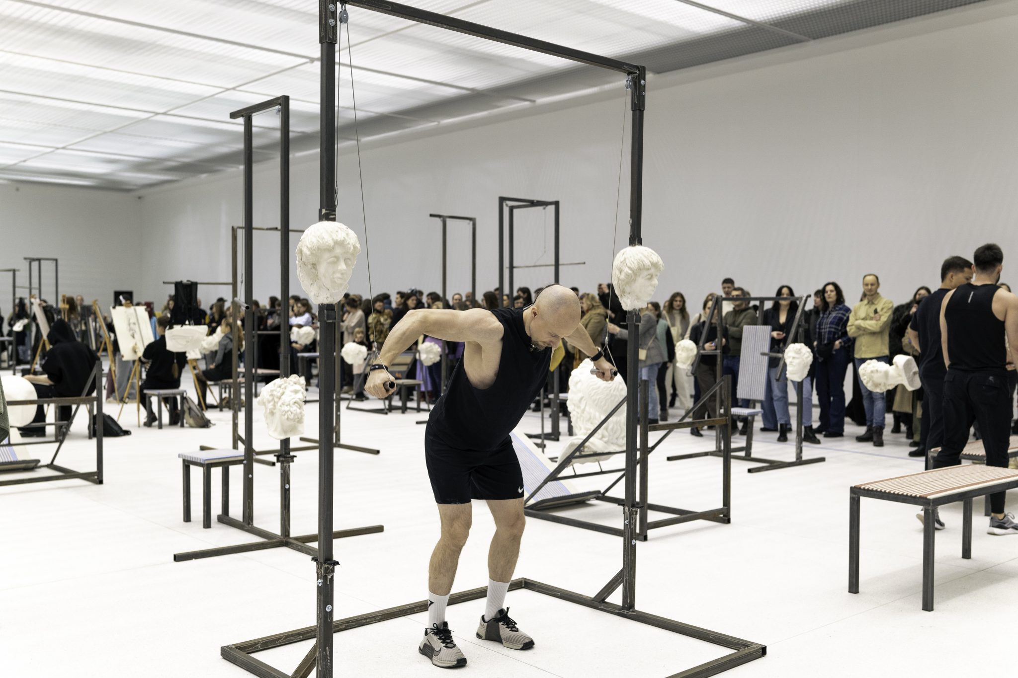 Instaliacija bus aktyvuojama tiek akademinio piešimo besimokančių asmenų, kurie paprastai piešia klasikinių skulptūrų kopijas, tiek žmonių, sportuojančių instaliacijos erdvėje. Kūrinys kviečia atidžiau pažvelgti į Vakarų kultūros meno istoriją ir pergalvoti dabartinę edukacijos sistemą, daugiausia grįstą pasikartojančiais veiksmais ir uoliu, sunkiu darbu – tai kūrinyje prilyginama treniruotėms sporto salėje. Parodos edukacinių užsiėmimų programą rasite čia.
