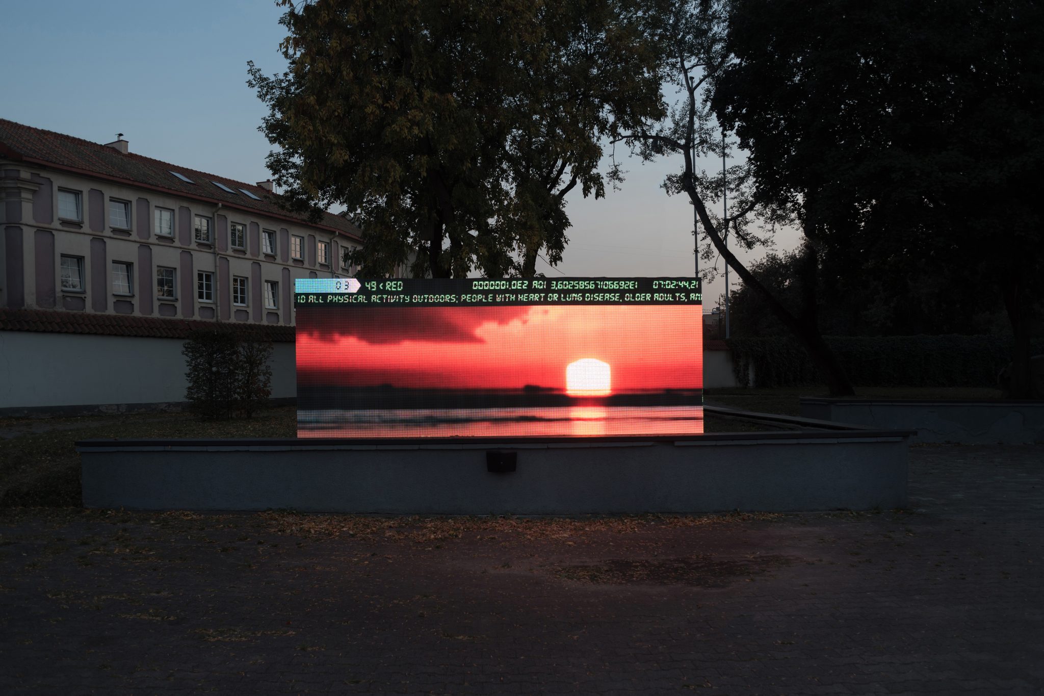 Videodarbo šaknys slypi nesenose „virusinėse“ naujienose. Lauko reklama Kinijoje, populiarinanti atostogas paplūdimyje, vakaruose buvo melagingai aprašoma kaip saulėtekių ir saulėlydžių inscenizacija: oro tarša neva buvusi tokia smarki, kad uždengė saulę, neleisdama patirti natūralaus reiškinio, ir stendas pasitelktas kaip būdas ištaisyti tokią padėtį. Evangelistos gestas paverčia fikciją realybe, kvestionuodamas mūsų kasdienio gyvenimo kontūrus.