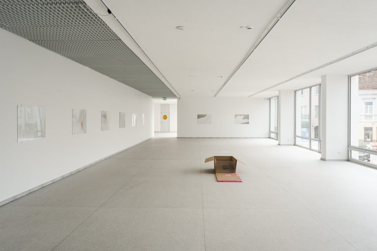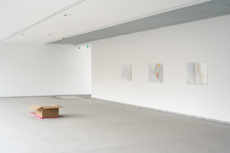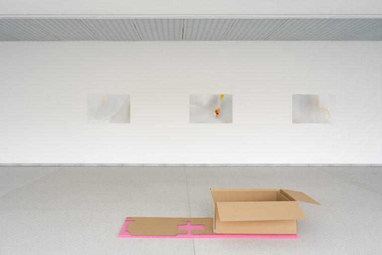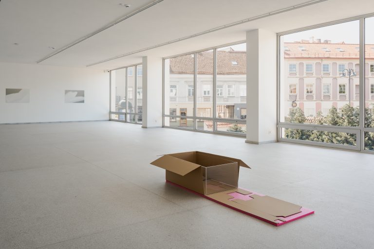 Visi parodos elementai – gėlių makrovaizdai, transportavimo dėžė, menamos erdvės – įkūnija sustabdytą judėjimą. Nuolatinėje cirkuliacijoje ir lūkesčių persmelktoje realybėje pauzė tampa inerciją ardančiu gestu. Išdidinti žiedų vaizdai ir maketą primenanti dėžė, tarsi mikropasaulis talpinanti kitus vaizdus, susuka erdvės ir laiko kilpą tarp išorės ir vidaus, irimo ir kūrimosi. Nuolatinių produkcijos ciklų ir nerimo nualintoje tikrovėje įsiterpia plyšys – dabarties akimirka, atverianti vaizduotės galimybę.