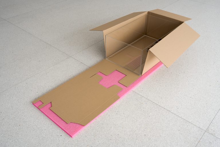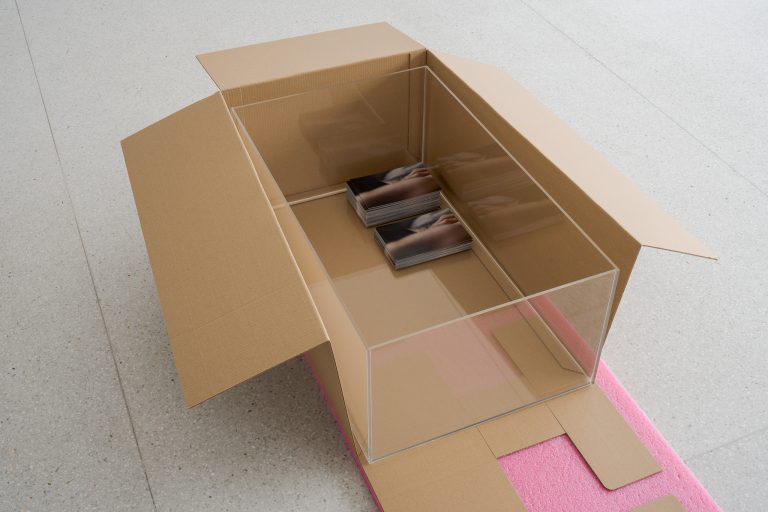Panašų sąlygiškumo pojūtį kuria ir kitas parodos dėmuo – menininko Gedimino G. Akstino skulptūrinis objektas – dėžė. Dvi skirtingos transportavimo pakuotės – du kūnai, autoriniu gestu sujungti į vieną kūrinį „Mes“, laikinai suspenduoja šių masinės gamybos daiktų pirminę paskirtį. Dėžė parodoje tampa savarankiška erdve – joje eksponuojami lankytojams išsinešti skirti vaizdai. Tarp jų – fotografija iš serijos „Vaikinai“ bei degalinę primenančios interjero ir eksterjero formos, savo abstraktumu artimos gėlių makrovaizdams. Kaip ir dėžės atveju, tai praardyta realybė, sukurta remiantis realiais vaizdiniais ir formomis, tačiau nebaigta, kintanti, tapusi nuoroda į tiražuojamas prekybinių mainų erdves.