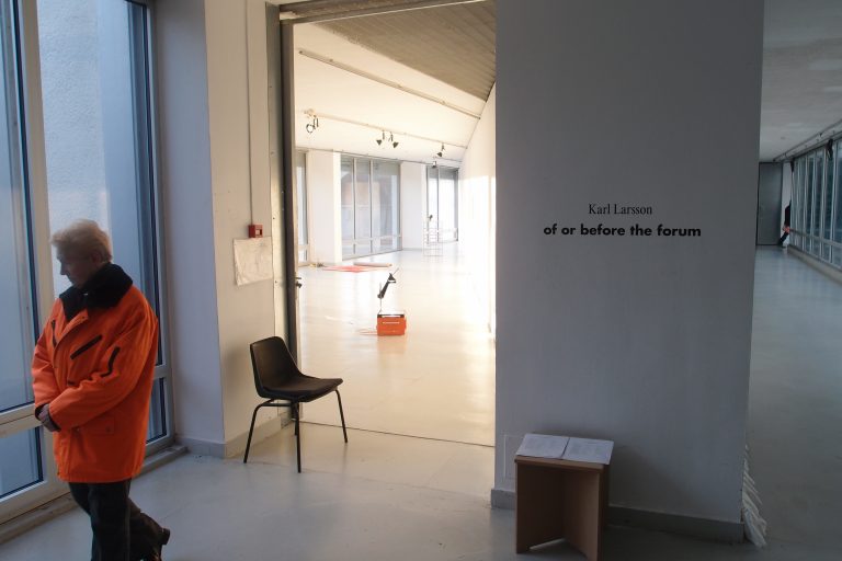 Karl Larsson – menininkas, poetas, periodinio leidinio OEI, skirto konceptualiam rašymui ir poezijai, redaktorių grupės narys. Kaip menininkas jis kuria skulptūrinio ir tekstinio pobūdžio darbus. Savo poezijoje Larssonas naudoja eseistines formas ir siekia konceptualaus sąmoningumo. Jis išleido tris poezijos knygas: Form/Force (OEI Editör, 2007), Nightsong (OEI Editör, 2009) ir Parrot (Paraguay Press, 2010). Naujausios jo personalinės parodos buvo surengtos Index galerijoje Stockholme ir Neue Aachener Kunstverein, Achene, Vokietijoje. Neseniai jis dalyvavo grupinėse parodose Stokholmo modernaus meno muziejuje ir 6-ojoje Monumentų Bienalėje Mose, Norvegijoje.