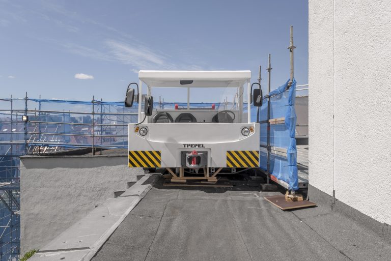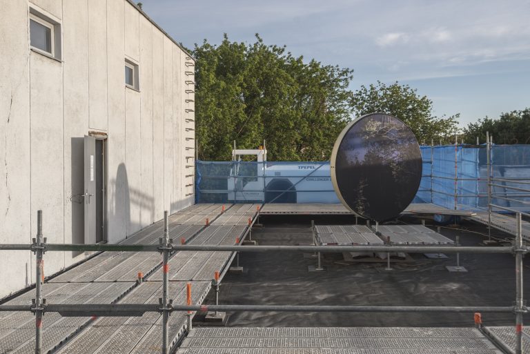 „Dienanakčiavimas“ – tai Kipro Dubausko personalinė paroda ant ŠMC stogo, kviečianti neįprastais maršrutais patirti pastatą ir miestą. Ji sukonstruota reaguojant į pandemijos metu pakitusį santykį su viešosiomis erdvėmis ir siekiant prieš artėjančią ŠMC pastato rekonstrukciją sujungti jo vidų ir išorę.
