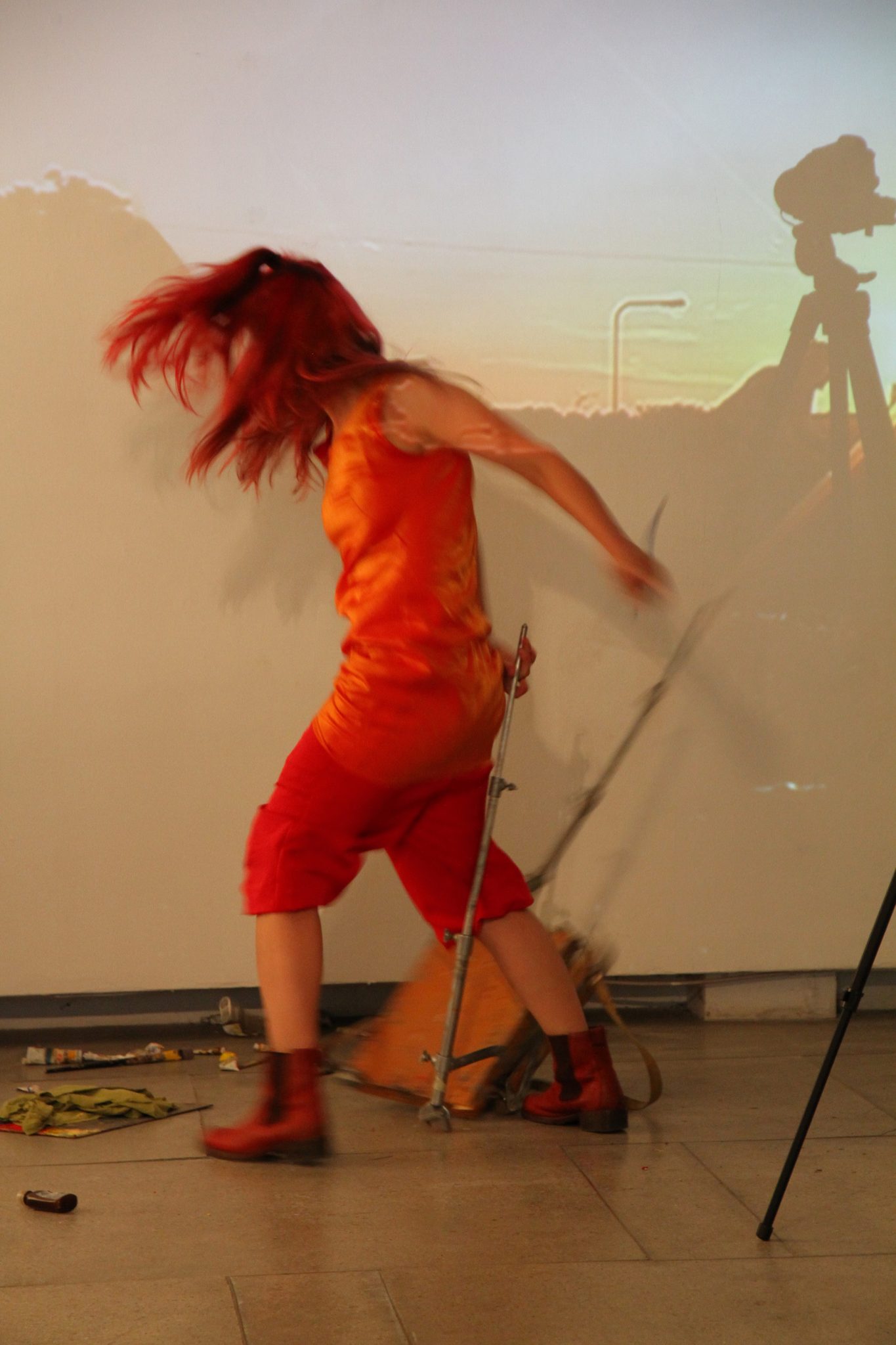 maišiukai su dažais ir teptukais, eskizų sąsiuvinukas, brendžio buteliukas, cigaretės ir … filmavimo kameros. Tai tapybos darbų ir įvykių ciklo „Kas netapė, tas tapys da“ dalis.