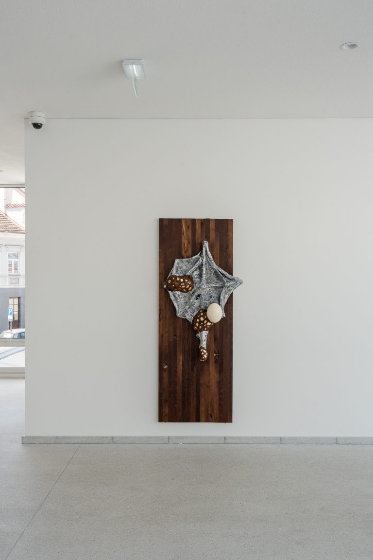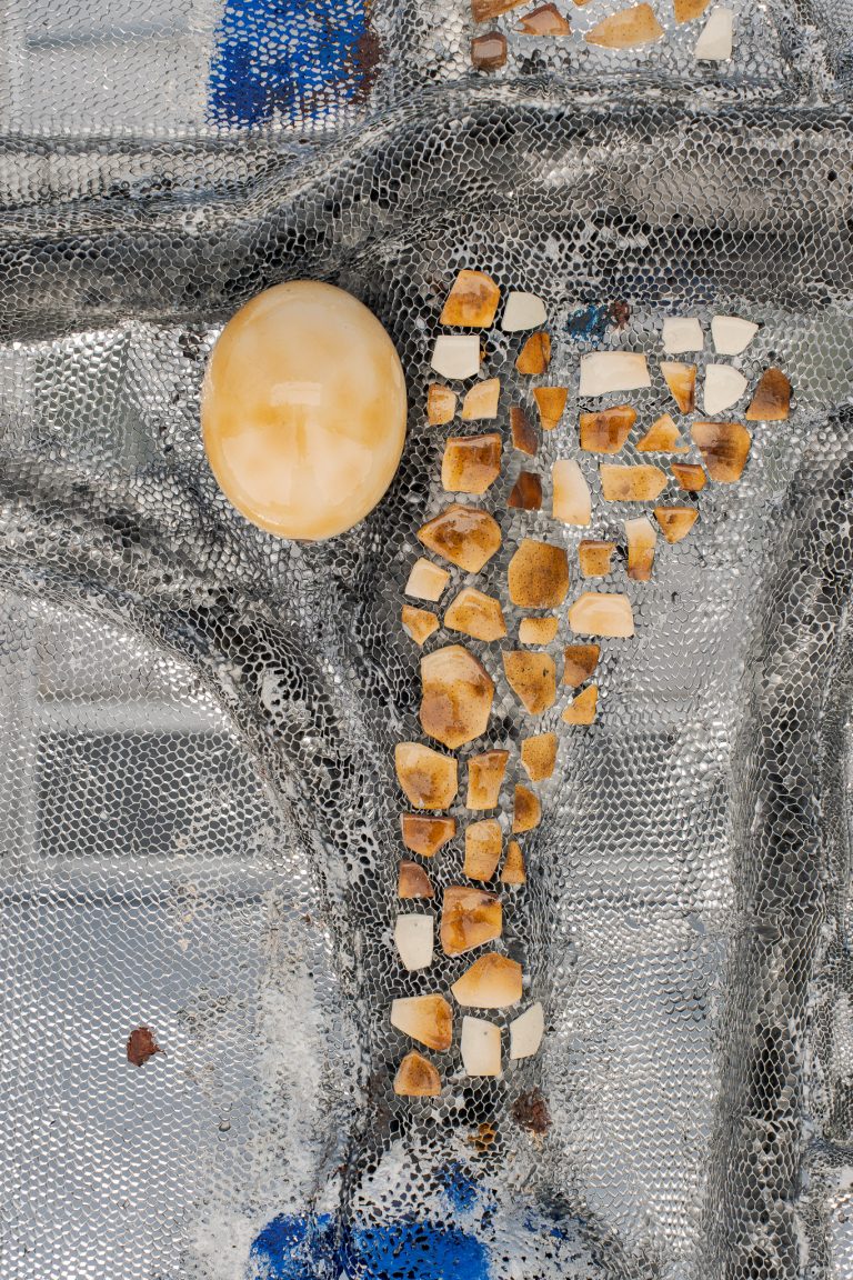 Kūriniams pasirinktos medžiagos taip pat siejasi su kūnams būdingais ciklais, kurie yra abipusiai – nelyg komposte vykstantys nuolatiniai skaidymo ir irimo procesai, tampantys atsinaujinimo šaltiniu. Taip dužusių kiaušinių lukštai pernaudojami ir tampa mozaikos medžiaga. Aliuminio koriai ir kiaušiniai atrodo trapūs, tačiau sykiu jie virsta tvirta statybine medžiaga. Šie įvaizdžiai ekspozicijoje siūlo subtilų fizinį santykį su objektais – galimybę matyti juos iš skirtingų kampų, nes jų choreografija keičia ne tik parodos erdvės suvokimą, bet ir pabrėžia kūrinių intymumą.