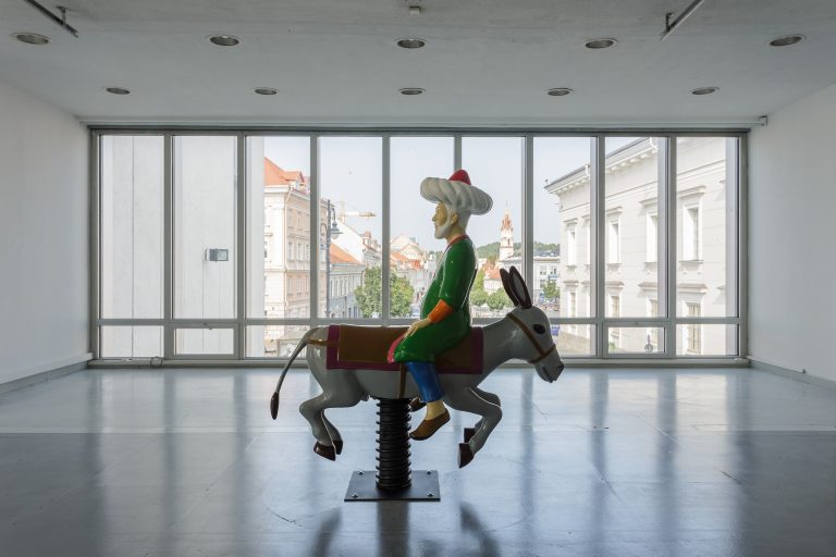 Vietinį regiono kontekstą parodoje „Iš lūpų į lūpas“ įkūnija įsivaizduojamos geografijos, vis dar menkai pripažįstamos baltiškoje tapatybėje, išgyvenančioje nuolatinius pokyčius, o šiuo metu keičiančios Rytų Europos žymę Šiaurės Europos priedanga. Parodoje skamba musulmoniškas kvietimas maldai turkų kalba – kontraversiškasis azanas tampa fonu „Vientakio manifestui“ ir Artimųjų Rytų išminčiaus-kvailio Molos Nasredino figūrai. Tokiu būdu paroda „Iš lūpų į lūpas“ siūlo į praeitį pažvelgti iš nuolat kintančios perspektyvos, o ateitį išvysti ir kaip pažadą, ir kaip kartotę.