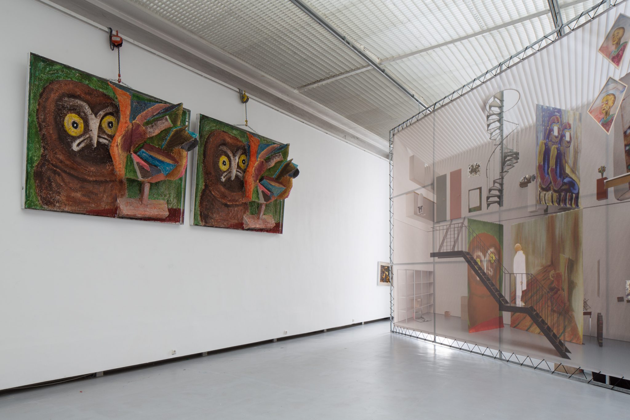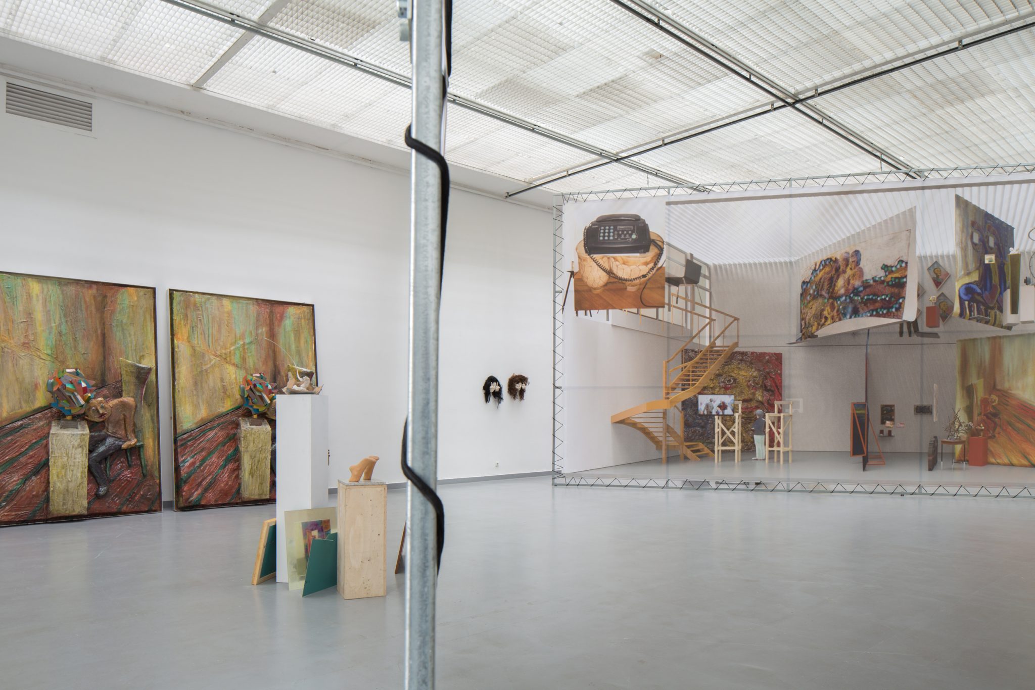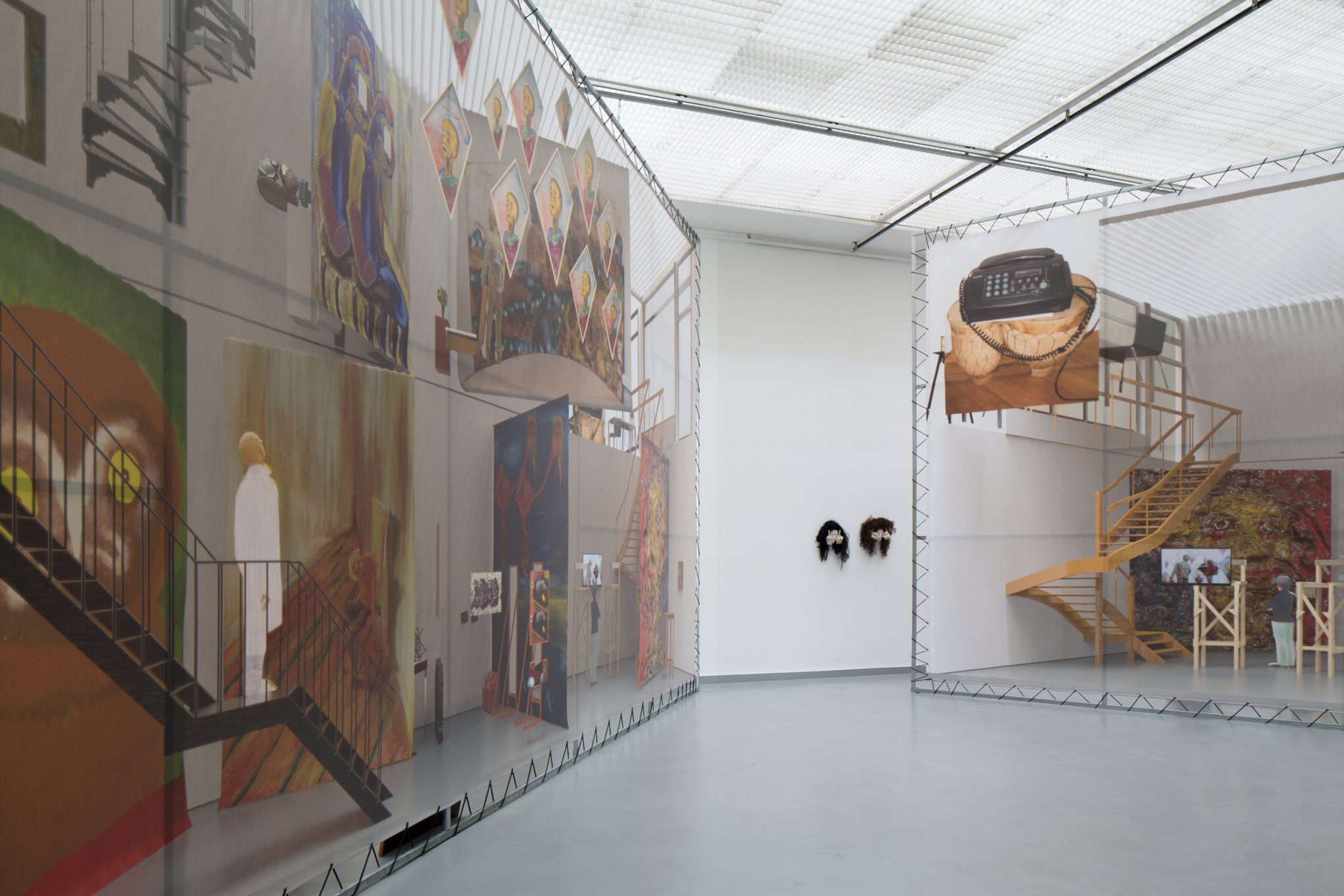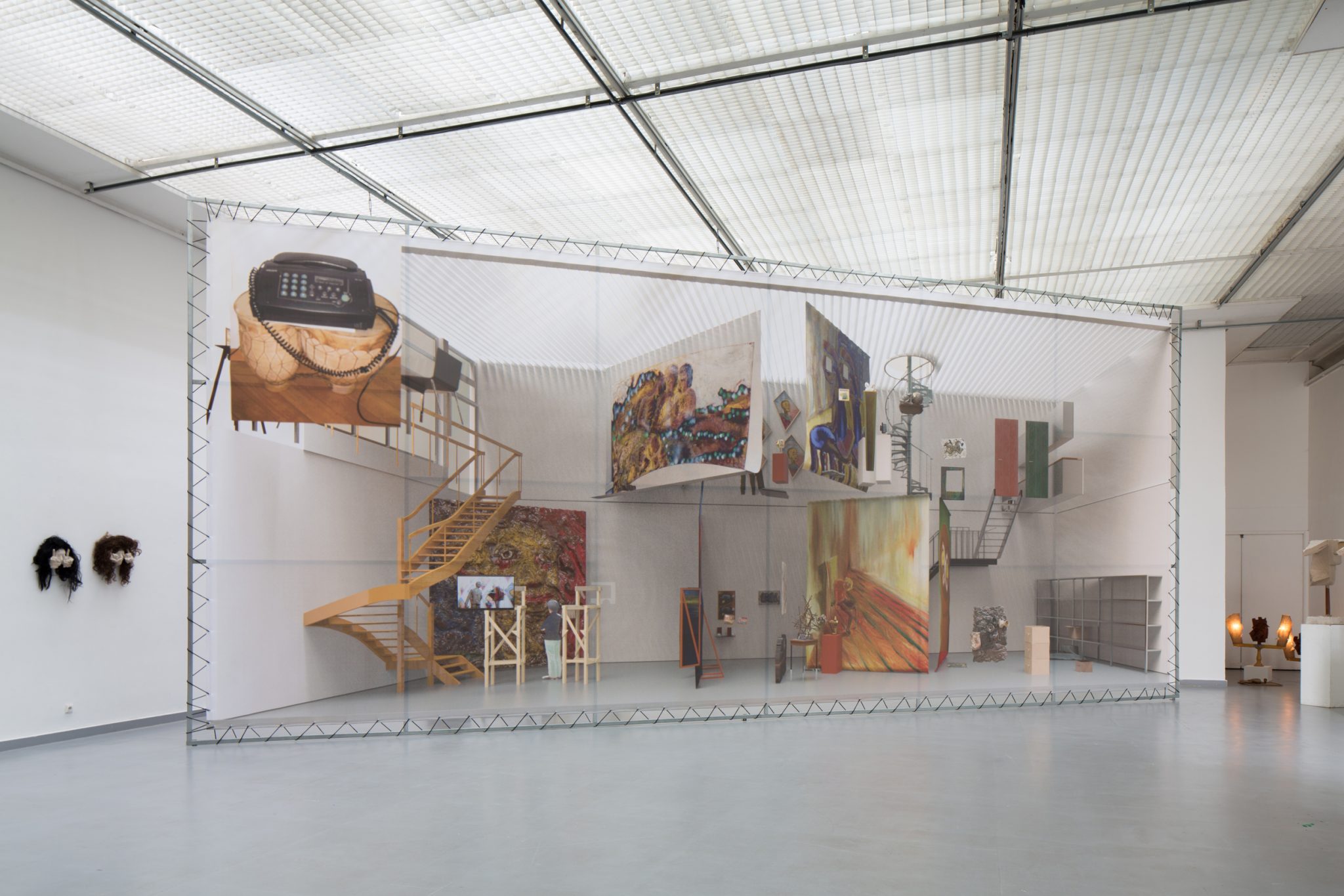Kaip foną minėtiems kūriniams Haga Kristensen sukūrė didelio formato plakatus – antrąjį planą nuo lubų iki grindų užpildantį 11 metrų ilgio diptiką. Diptike atvaizduoti 3D brėžiniai iš anksčiau vykusios šio menininko parodos – tai ir reprezentacija, ir tyrimas. Be to, šis diptikas iliustruoja idėją, kad atskiras eksponatas gali būti suvokiamas kaip tam tikras vaiduokliškas sudėtinės kompozicijos vaizdas.
