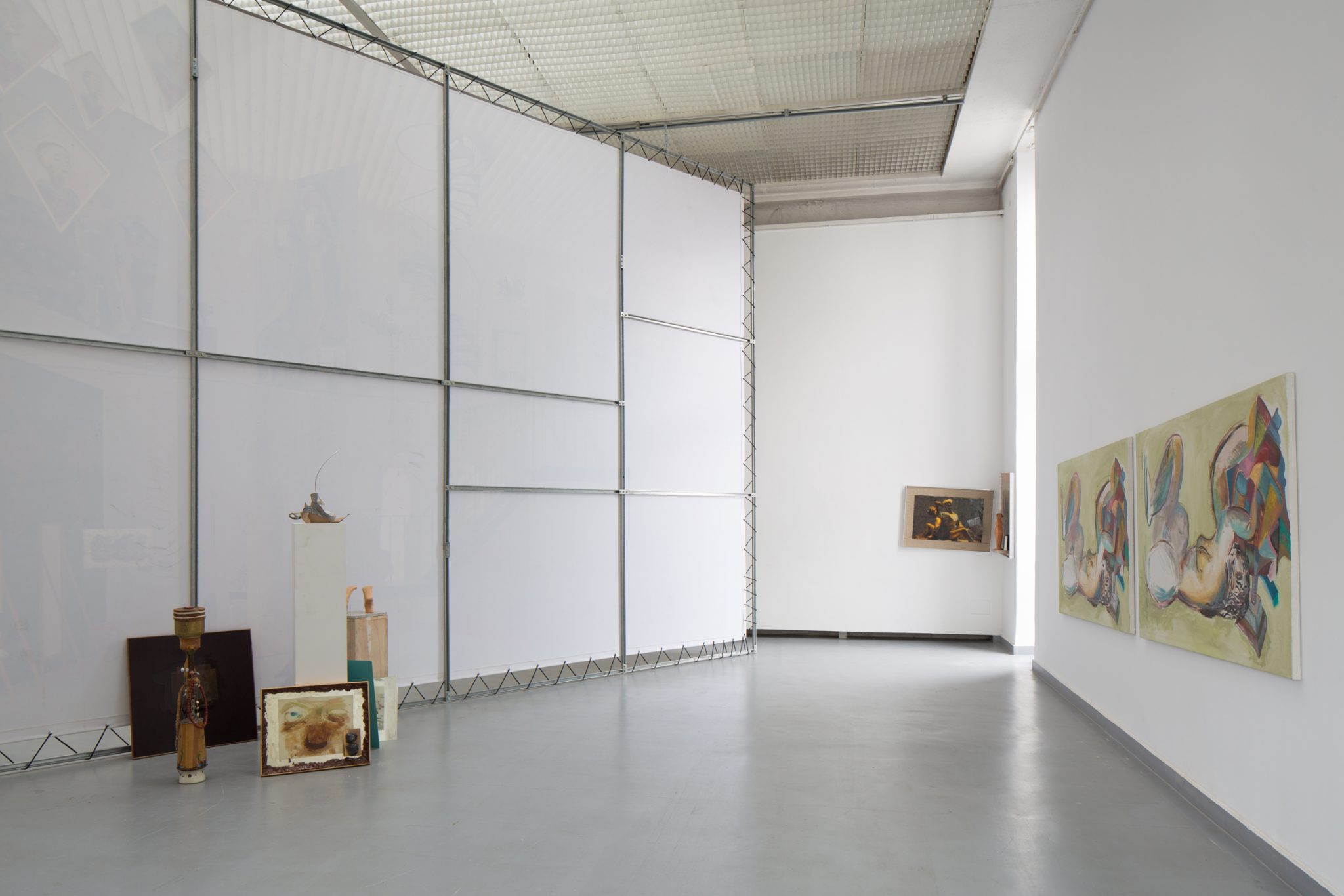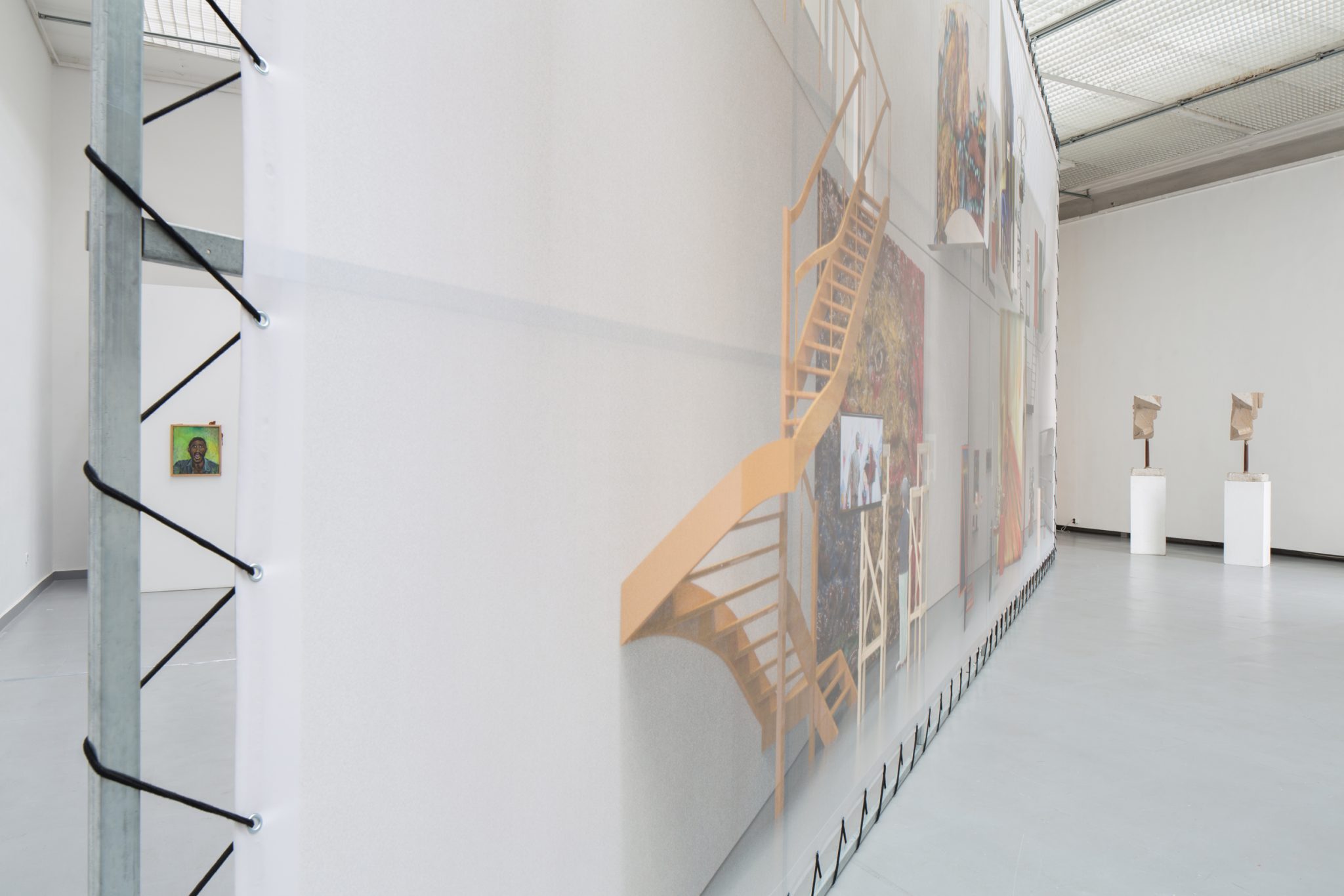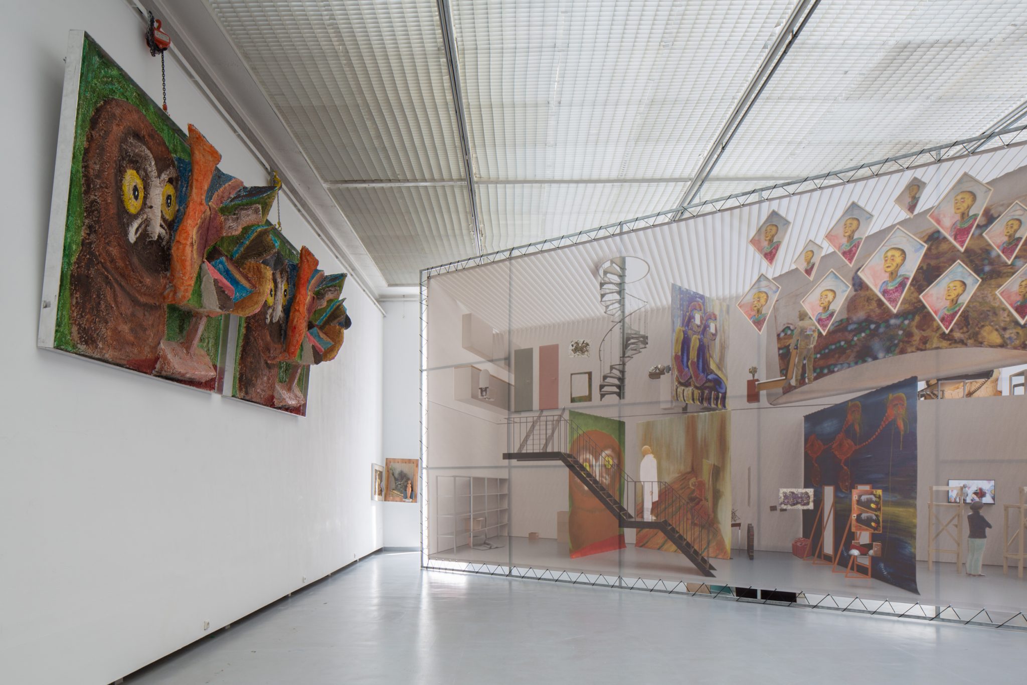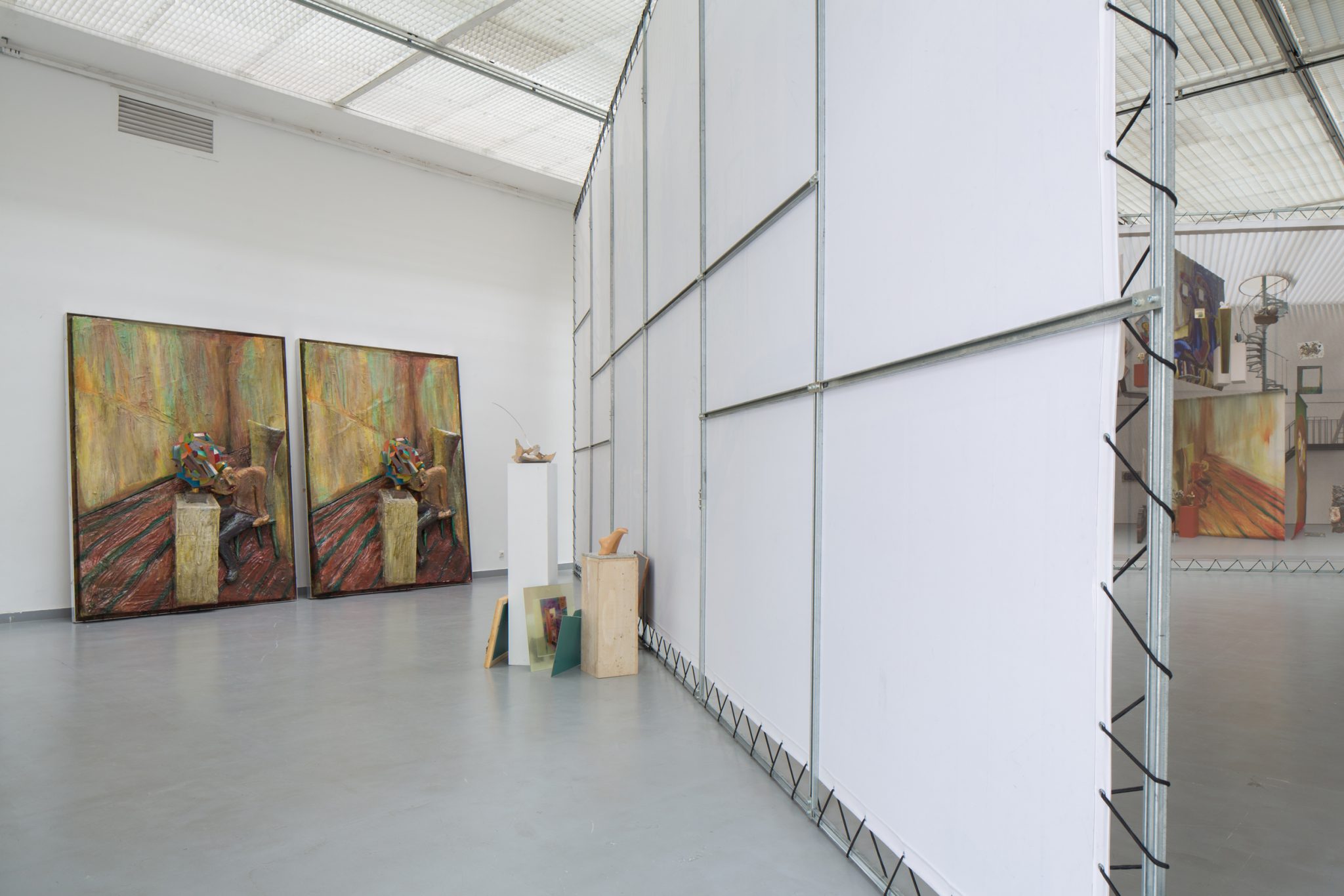Kaip foną minėtiems kūriniams Haga Kristensen sukūrė didelio formato plakatus – antrąjį planą nuo lubų iki grindų užpildantį 11 metrų ilgio diptiką. Diptike atvaizduoti 3D brėžiniai iš anksčiau vykusios šio menininko parodos – tai ir reprezentacija, ir tyrimas. Be to, šis diptikas iliustruoja idėją, kad atskiras eksponatas gali būti suvokiamas kaip tam tikras vaiduokliškas sudėtinės kompozicijos vaizdas.