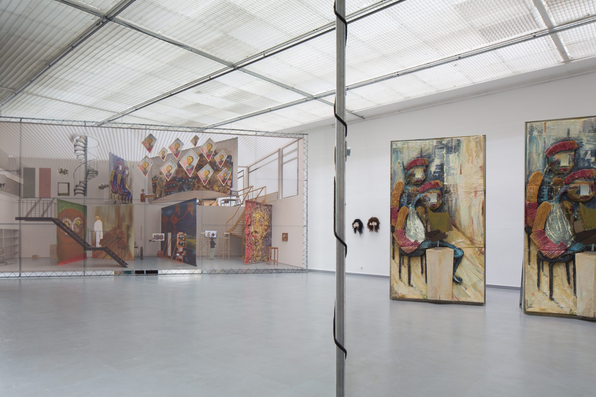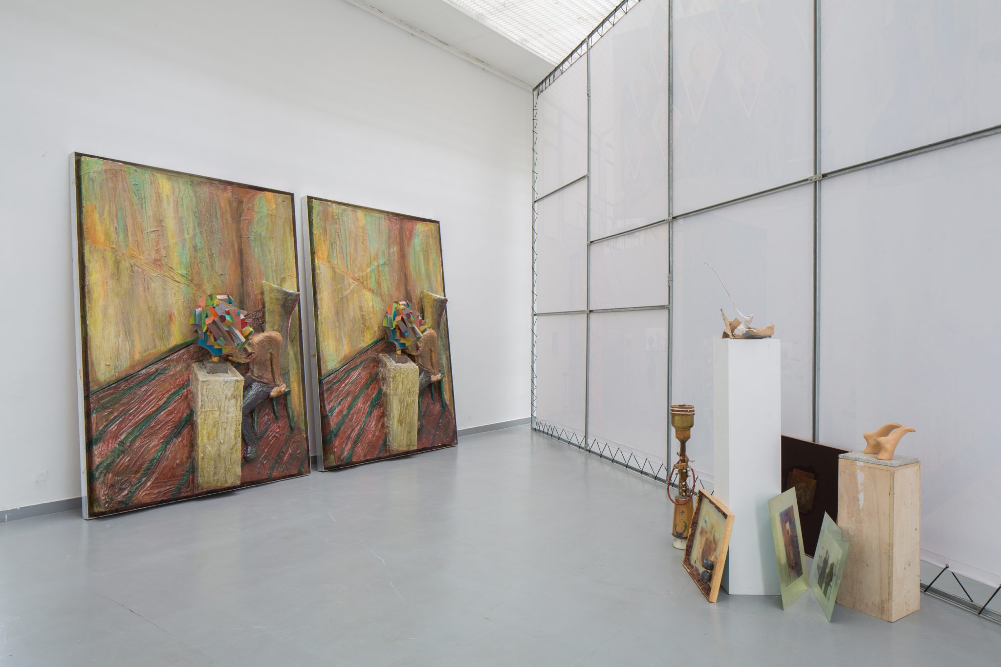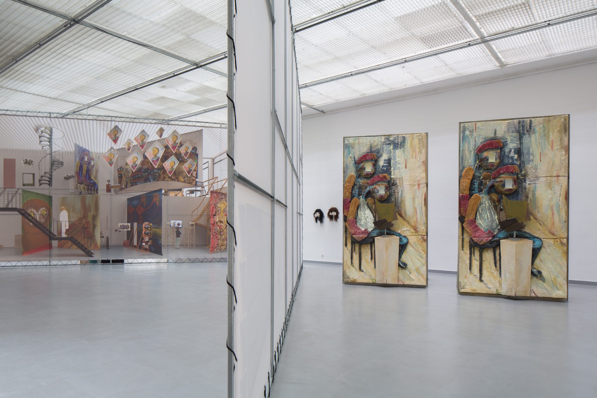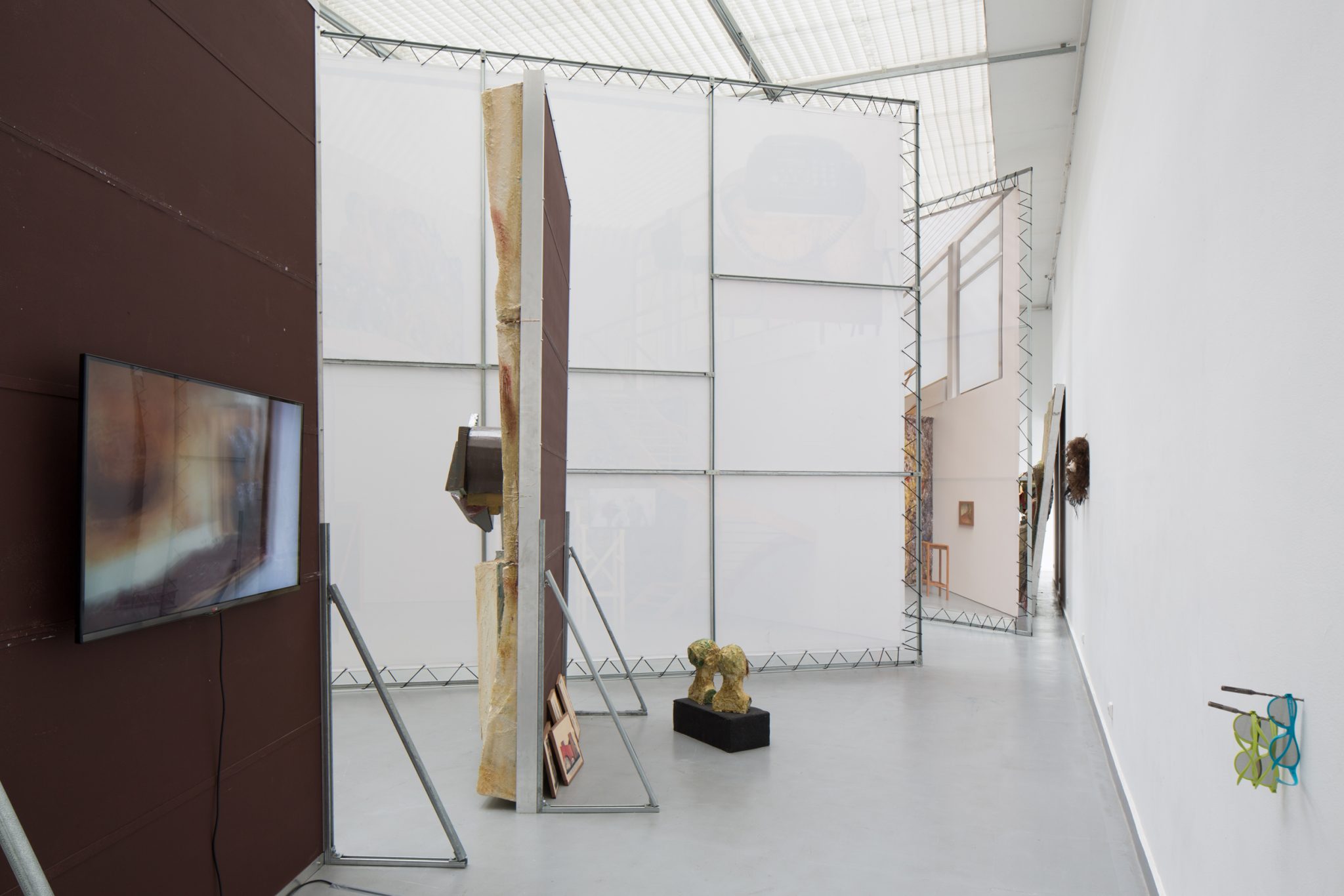 Kaip foną minėtiems kūriniams Haga Kristensen sukūrė didelio formato plakatus – antrąjį planą nuo lubų iki grindų užpildantį 11 metrų ilgio diptiką. Diptike atvaizduoti 3D brėžiniai iš anksčiau vykusios šio menininko parodos – tai ir reprezentacija, ir tyrimas. Be to, šis diptikas iliustruoja idėją, kad atskiras eksponatas gali būti suvokiamas kaip tam tikras vaiduokliškas sudėtinės kompozicijos vaizdas.