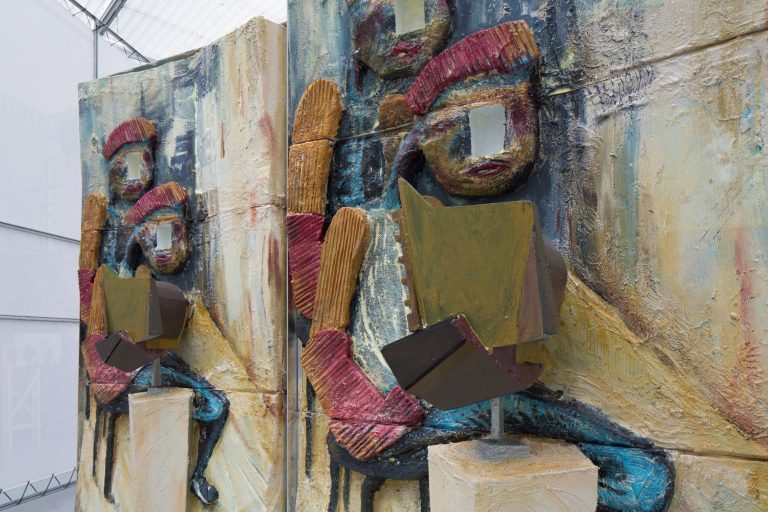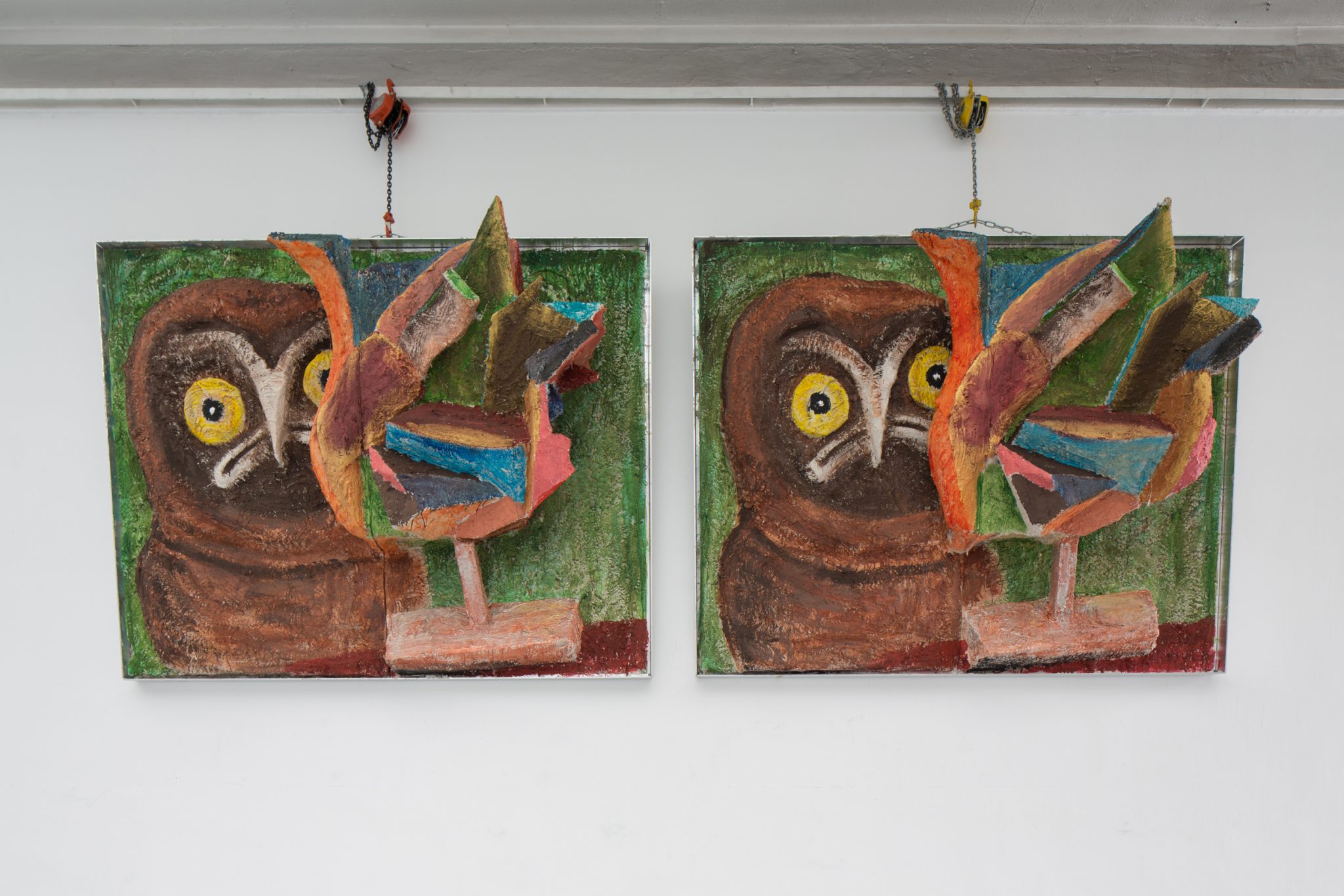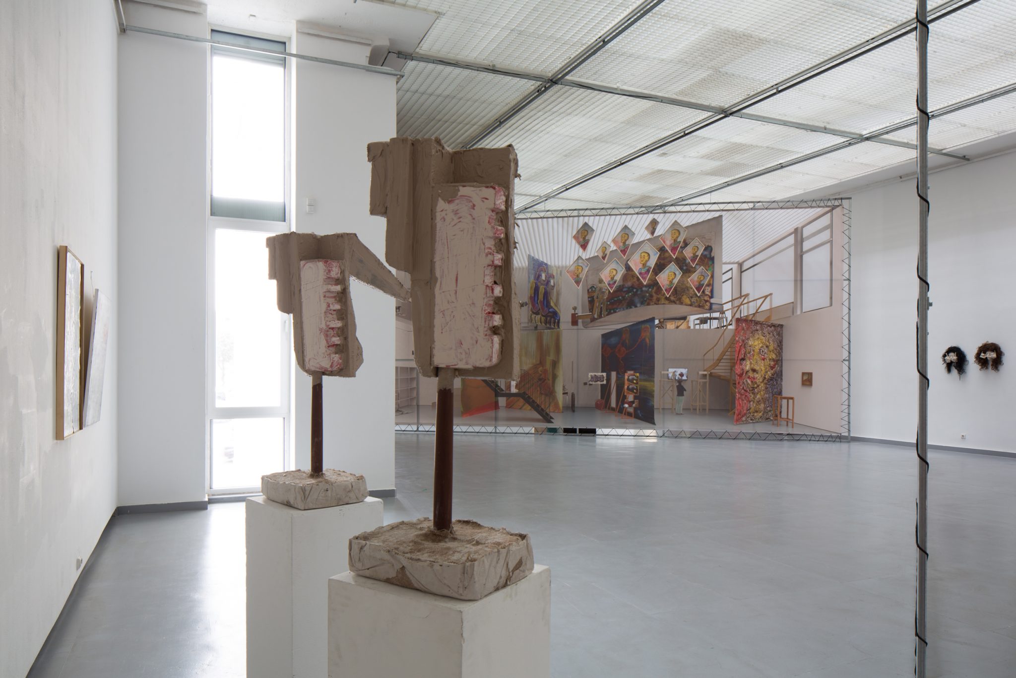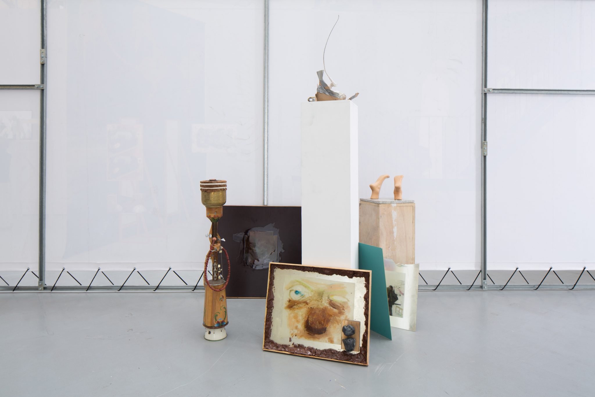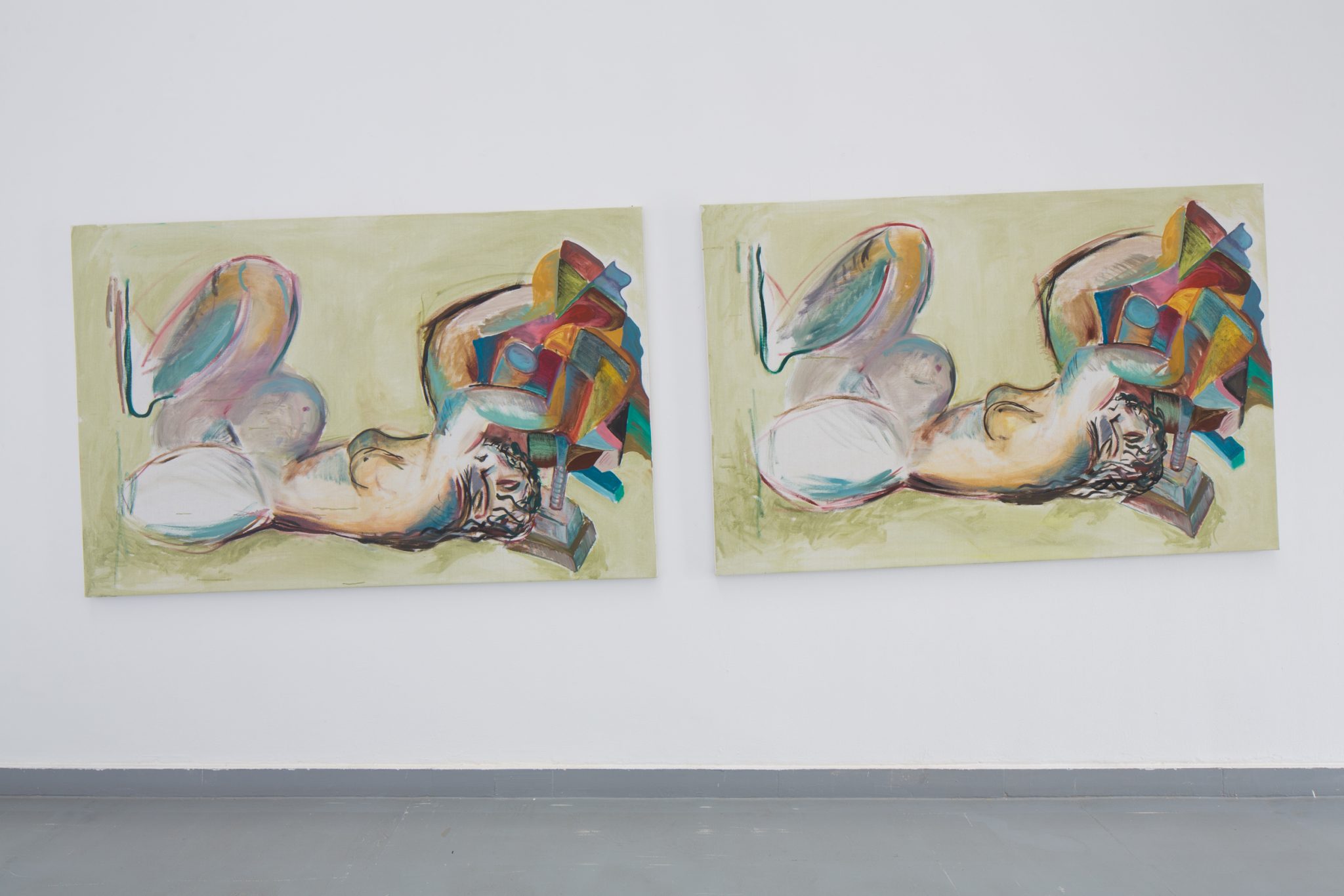Kaip foną minėtiems kūriniams Haga Kristensen sukūrė didelio formato plakatus – antrąjį planą nuo lubų iki grindų užpildantį 11 metrų ilgio diptiką. Diptike atvaizduoti 3D brėžiniai iš anksčiau vykusios šio menininko parodos – tai ir reprezentacija, ir tyrimas. Be to, šis diptikas iliustruoja idėją, kad atskiras eksponatas gali būti suvokiamas kaip tam tikras vaiduokliškas sudėtinės kompozicijos vaizdas.