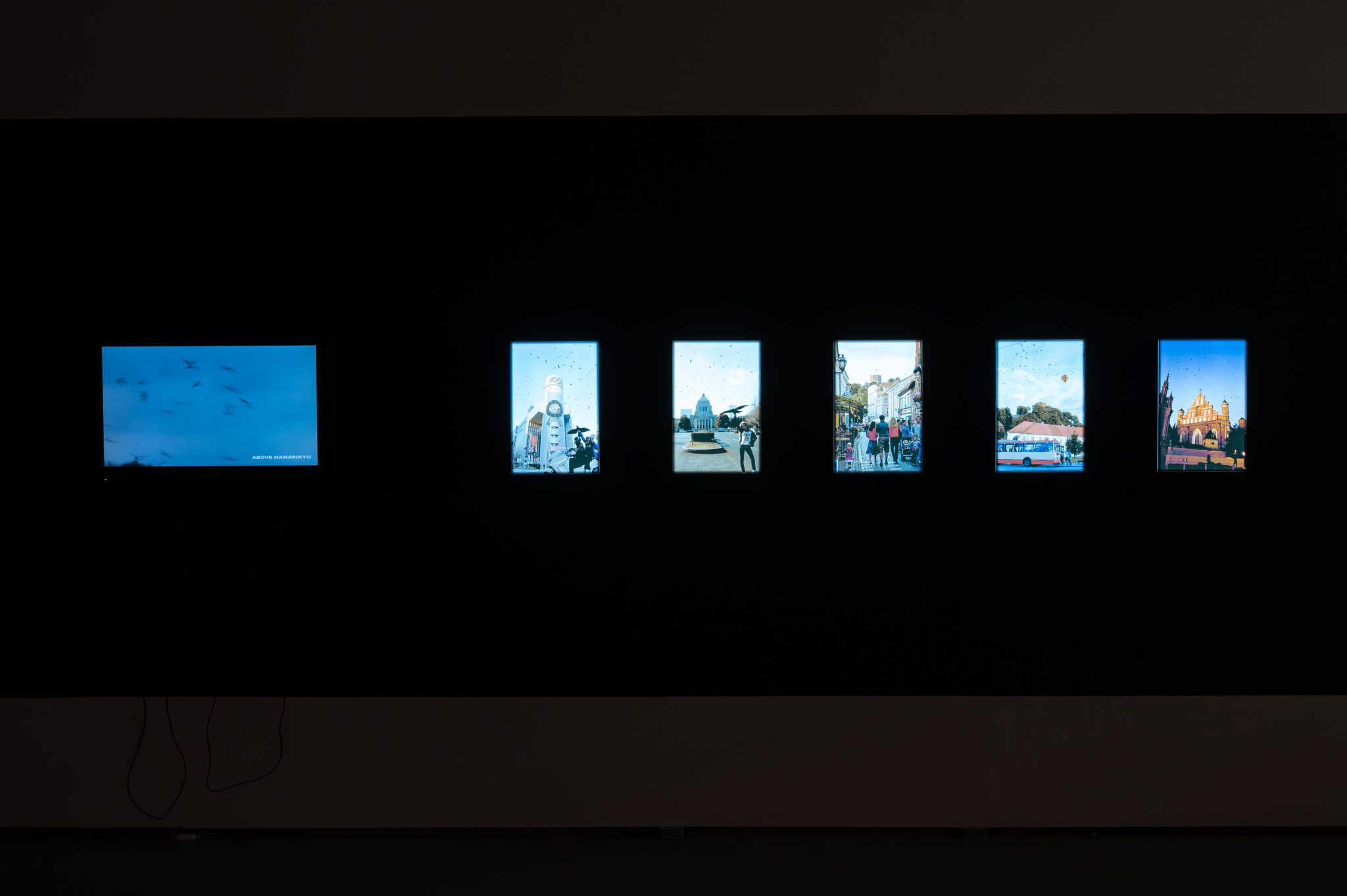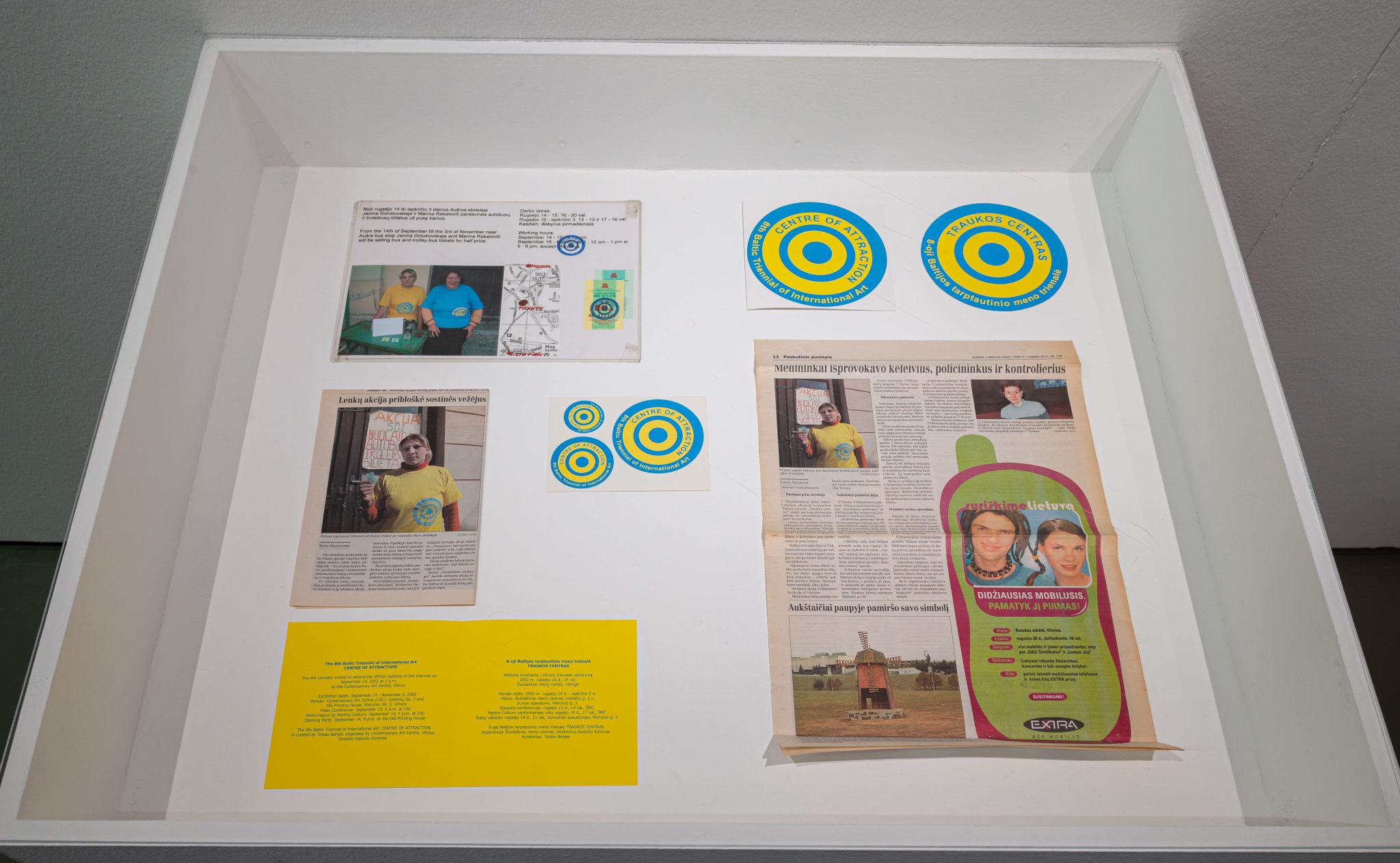 Ko gero, daugeliui vilniečių įsiminė menininkų Jonathano Monko ir Pierreʼo Bismutho ant ŠMC fasado sukurtas užrašas „kiekvienas yra menininkas, bet tik menininkai tai žino“. Prieš daugiau nei dvidešimt metų vykdami įrengti savo parodos Vilniuje jie pasirūpino šiltomis kailinėmis kepurėmis. Jomis pasidabinę noriai pozavo fotografams ir patys nevengė įsiamžinti ir parodoje, ir miesto aplinkoje. Abu menininkai, iš pirmo žvilgsnio į akį nekrintantys vidutinio amžiaus tipažai, su tomis à la russe stiliaus kepurėmis atrodė kaip tikri užsieniečiai. Ironiška, kad 2001 m. Raimundo Malašausko kuruota šių menininkų kūrybos paroda ŠMC buvo pavadinta „Our trip out West“. Po daugiau nei dvidešimties metų šis parodos pavadinimas įgyja naujų prasmių. Stovėdami priešais vieną iš to meto parodos progai sukurtų kūrinių, nejučia patys tampame svetimšaliais, tarsi pro didinamąjį stiklą stebinčiais atviruke pozuojantį atvykėlį prie to meto aukščiausio pastato šalyje – viešbučio „Lietuva“.