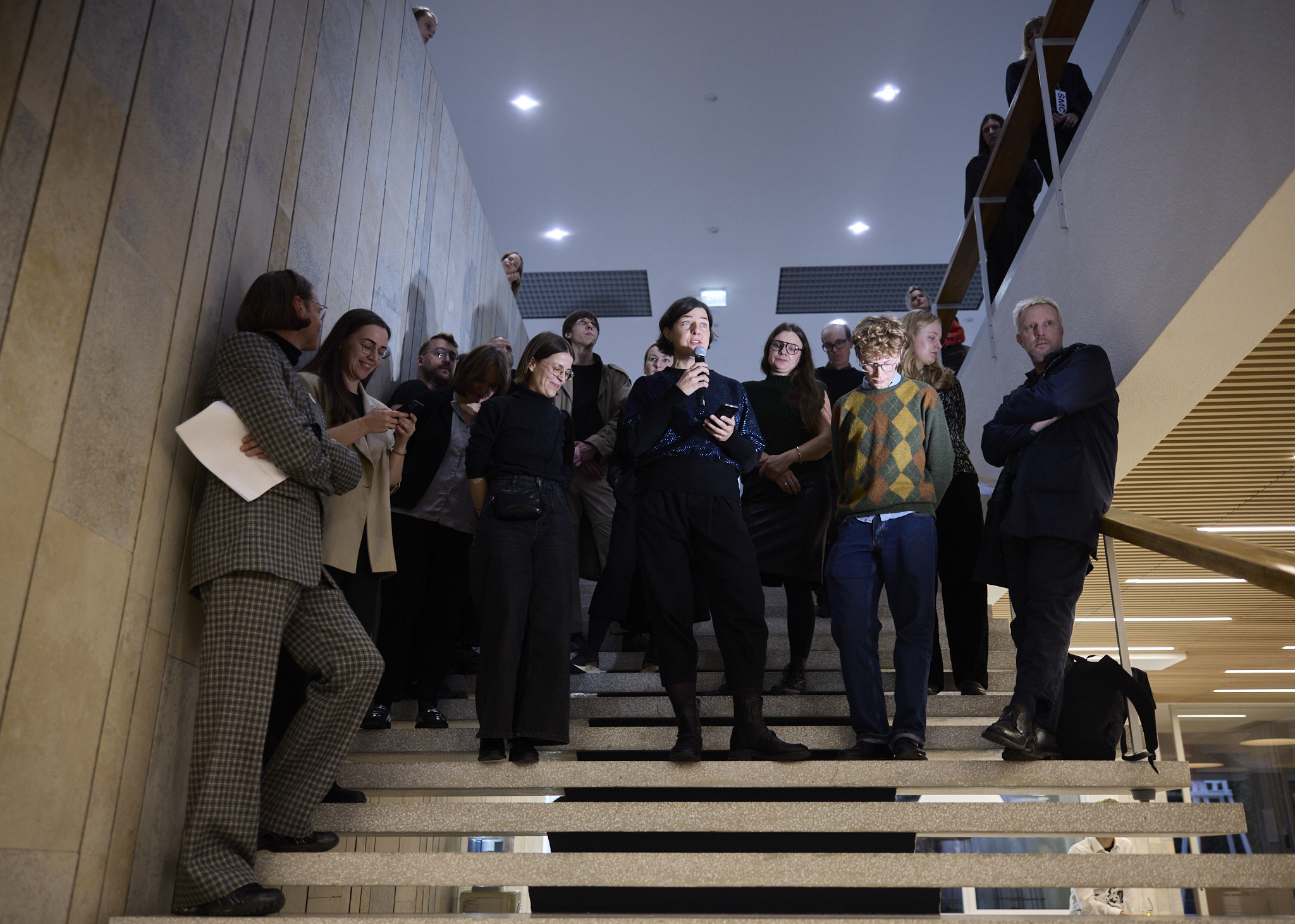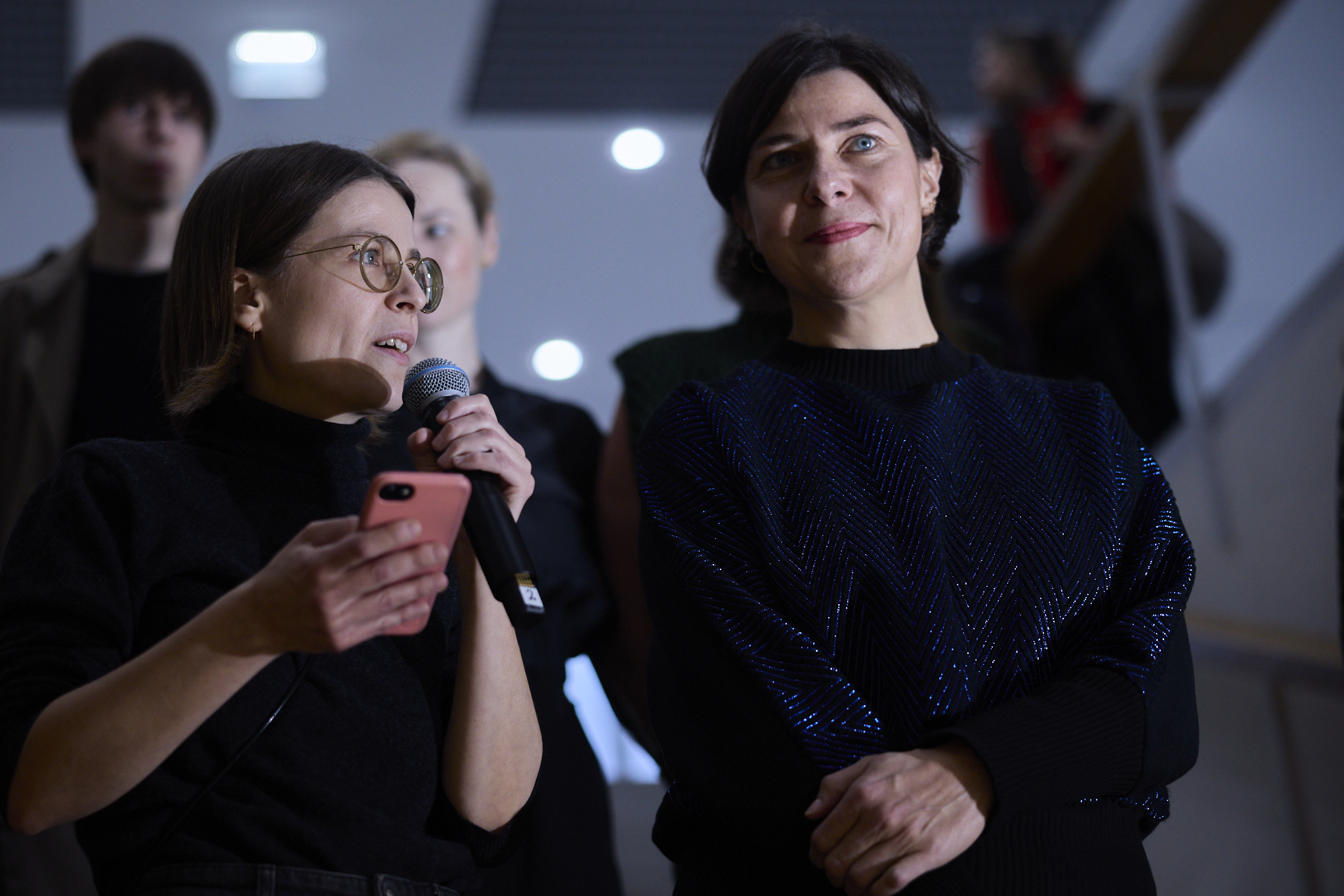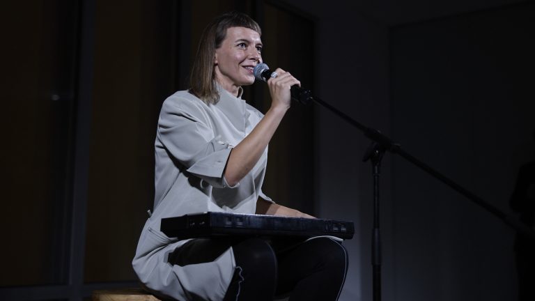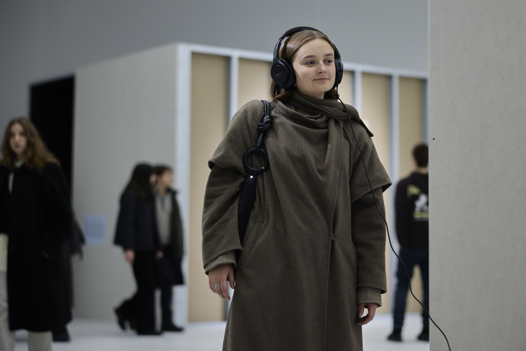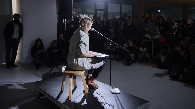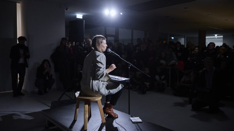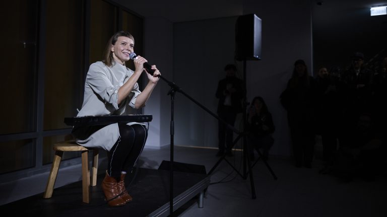 LINA LAPELYTĖ – Vilniuje ir Londone kurianti Lina Lapelytė savo meninę praktiką, glaudžiai susijusią su muzikos kompozicija ir garsu, grindžia performanso, kaip pagrindinės raiškos priemonės, principais. Jos kūriniuose kritiškai apmąstomi popkultūros konstruktai, lyčių normos ir kolektyvinė atmintis – ypač nostalgija. Juose dalyvauja ir profesionalūs, ir neprofesionalūs atlikėjai; dainavimo aktu dažnai jungiami įvairūs muzikos žanrai – nuo populiariosios muzikos iki operos. Dainavimas čia tampa kolektyviniu, emociniu įvykiu, keliančiu klausimus apie pažeidžiamumą ir nutildymą.